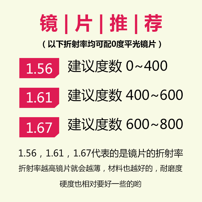 1,67 Ультра -типичный непреодолимый плюс жесткая смоля оптическая линза Анти -беглый свет может быть очень высоким визуальным зеркалом двух -обрабатывающая обработка