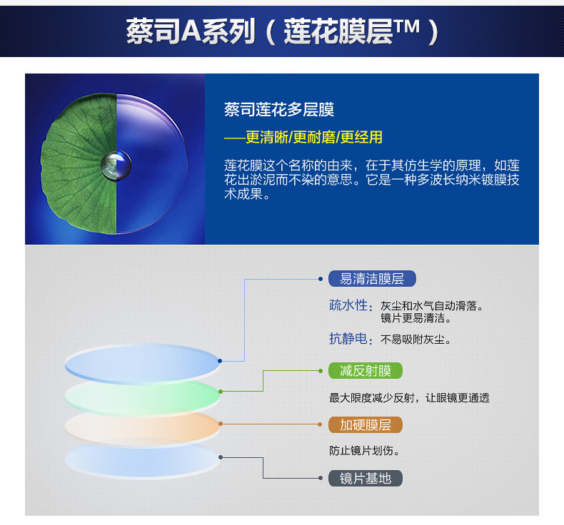 Zeiss Lins серия Lotus Film Resin 1,50 Сферическая 1,60 1.67 Не -кферические оптические линзы миопии