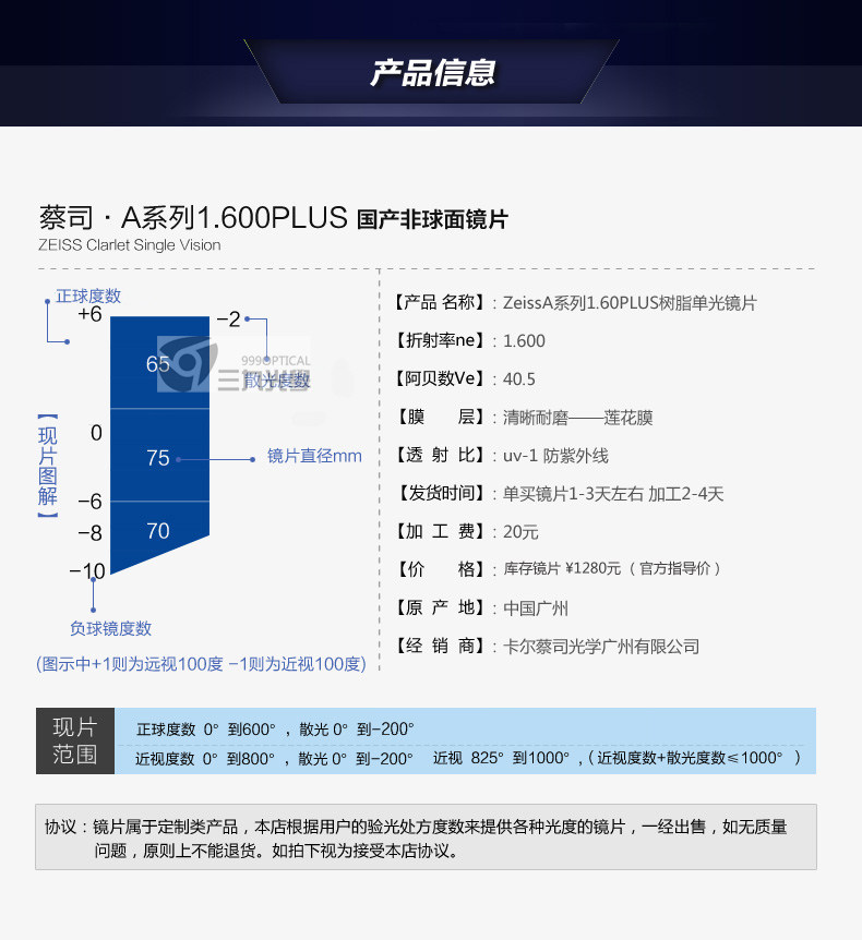 | Показатель преломления линзы: | 1.49 (обычный), 1,61 (тонкий), 1,67 (ультра -тщательный), 1,73 (ультра -тщательный) |