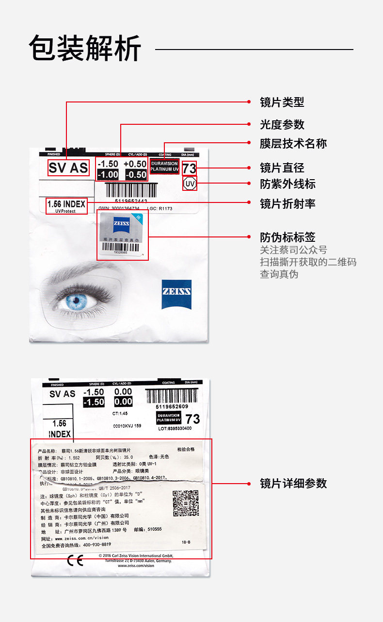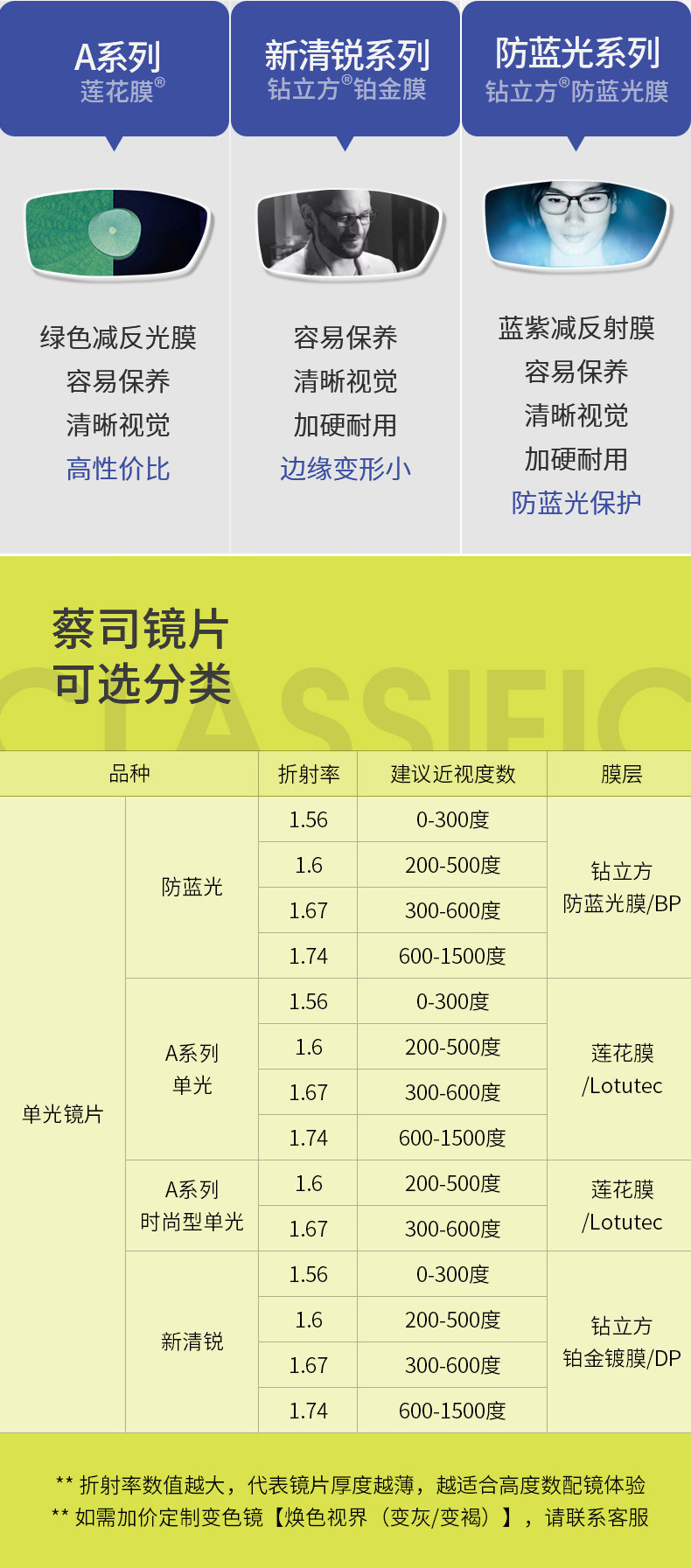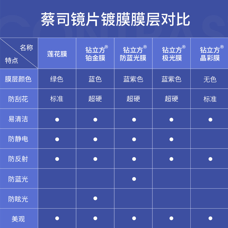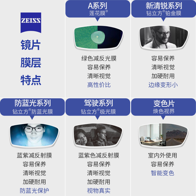Zeiss серия линз High Myopia Anti -Blu -Ray Rui Diamond Platinum Film New Clear Chore Blones