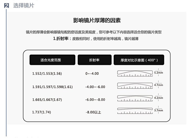 | Показатель преломления линзы: | 1,56 (тонкий), 1,61 (тонкий), 1,67 (ультра -тщательный) |