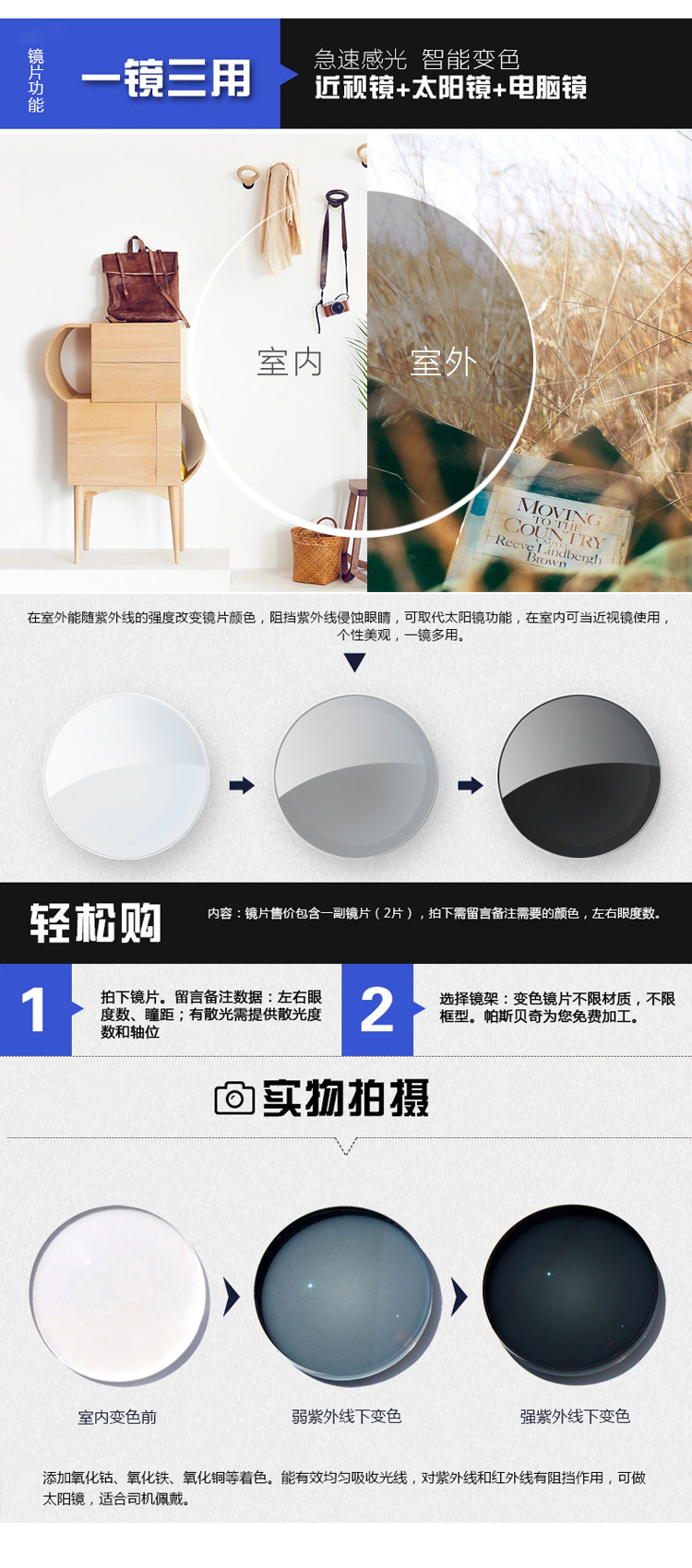 Характер -Трансформированные оптические линзы 1,56 1.61 1.67 Анестезия почти фото света.