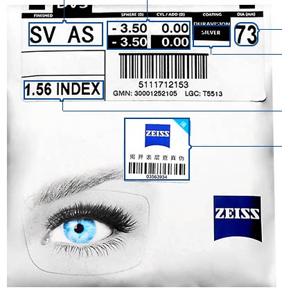 Zeiss Lins Anti -Blue Diamond Cube Membrane Membrane Non -Spherical Myopia Optical Lens 1,56 1,6 1,67 Ультра -типичные линзы