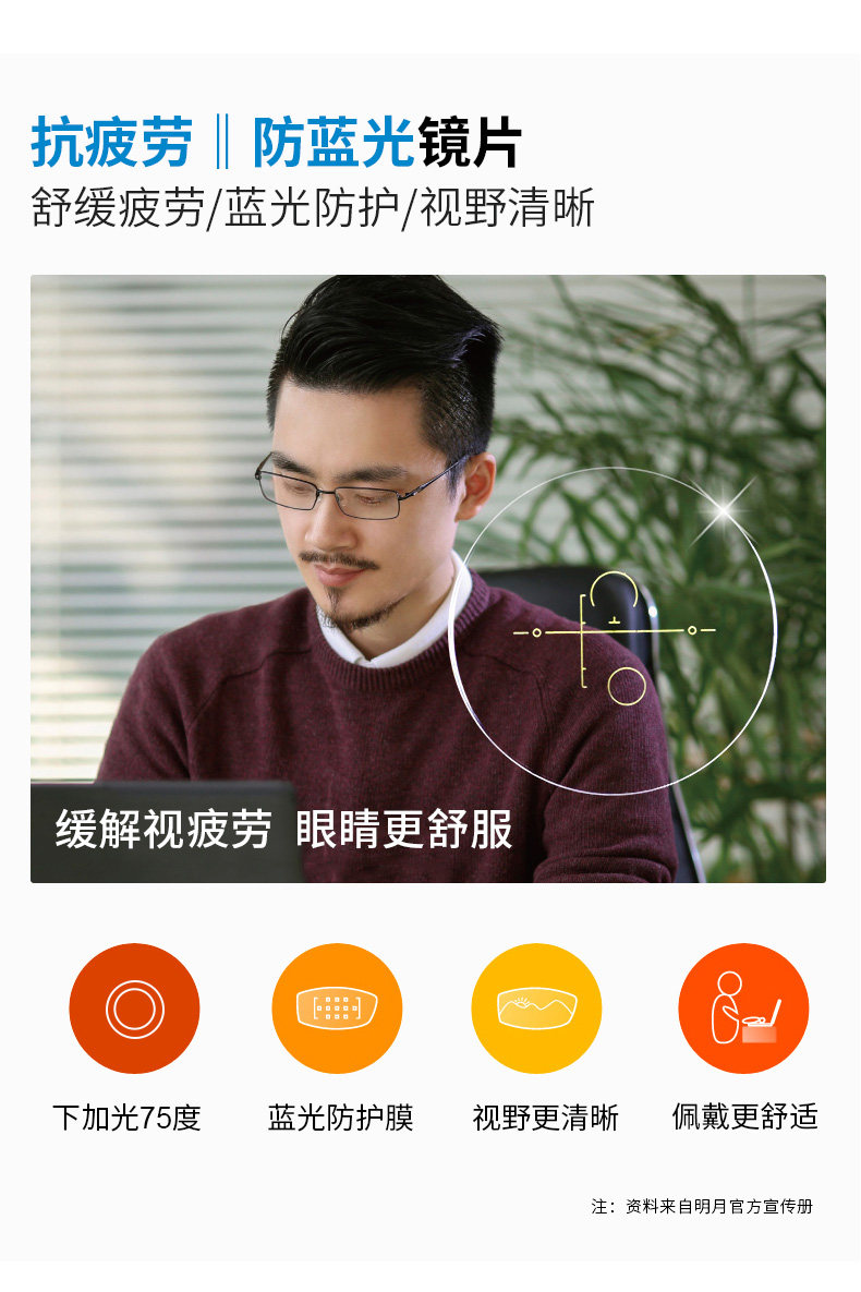 明月 Цифровой анти -беглый свет, чтобы облегчить визуальную усталость зрительную линзу постепенные очки миопии 2 таблетки 2 таблетки
