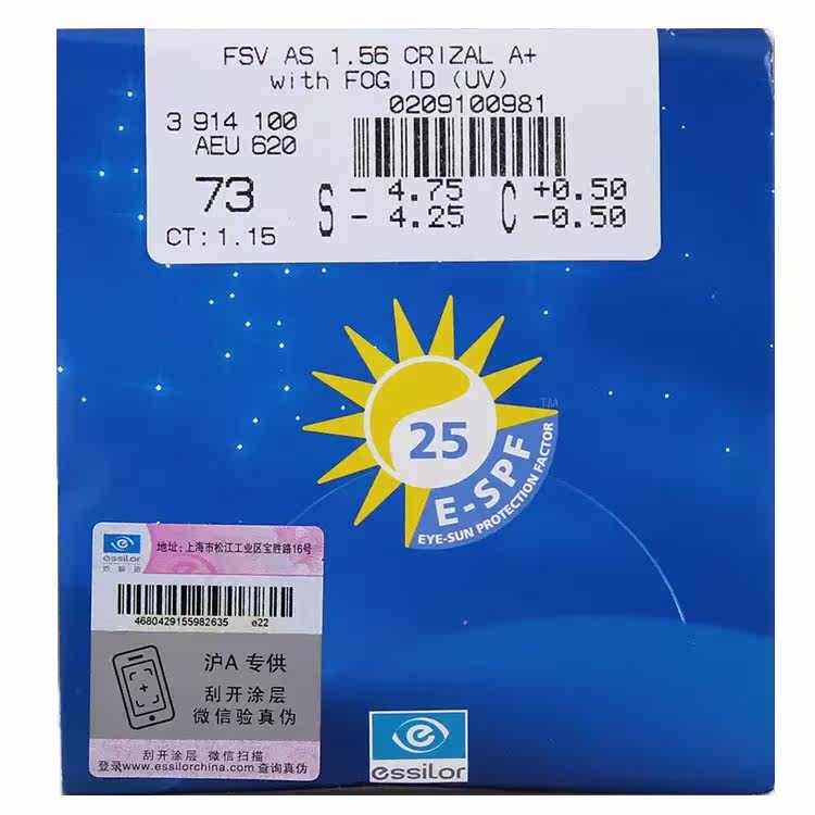 依视路 Уровень 1.56 1,60 1.67 Ультра -типичные не -кферические алмазные кристалл a+ряд радиационных надежных очков
