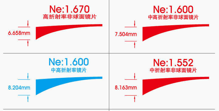 | Показатель преломления линзы: | 1,56 (тонкий), 1,61 (тонкий), 1,67 (ультра -тщательный), 1,74 (ультра -тщательный) |