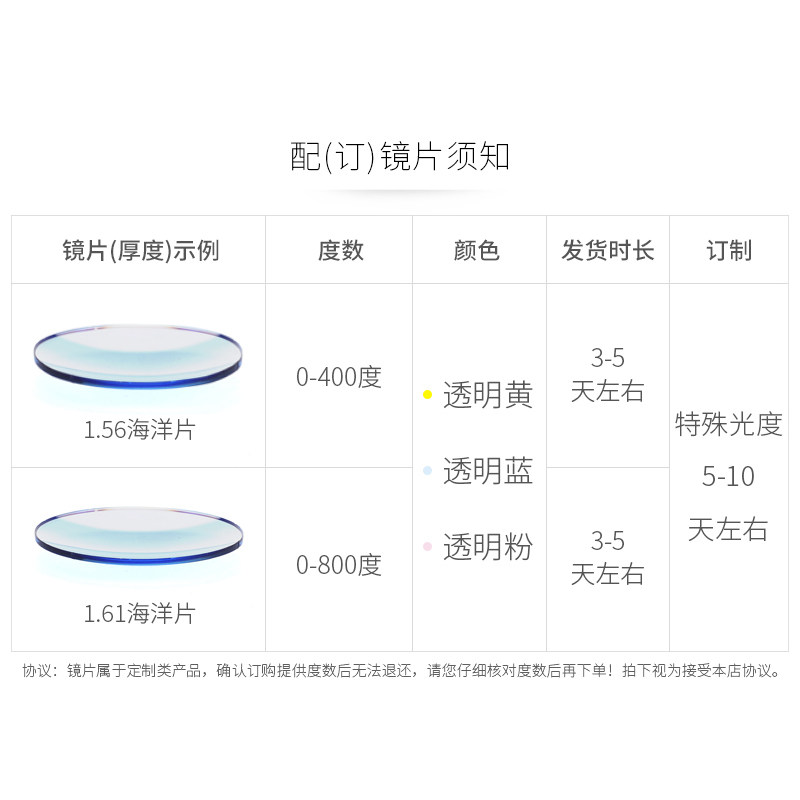 | Показатель преломления линзы: | 1.49 (обычный), 1,61 (тонкий), 1,67 (ультра -тщательный), 1,56 (тонкий) |