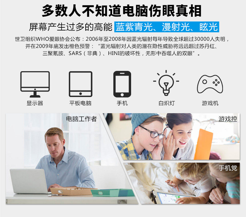 Анти -мобильный телефон компьютер Blu -ray не -кферический радиационный анти -флакочный плоский анти -светло -легкий свет миопий