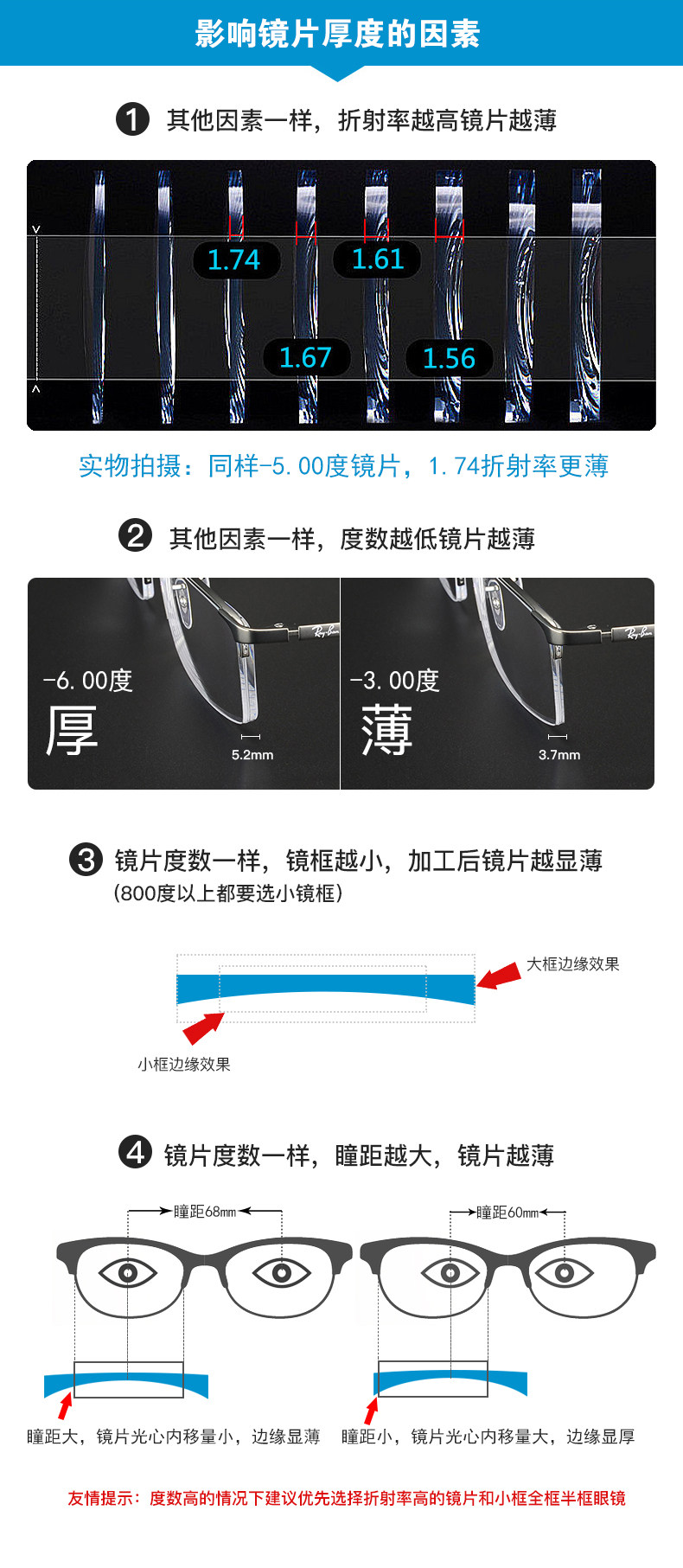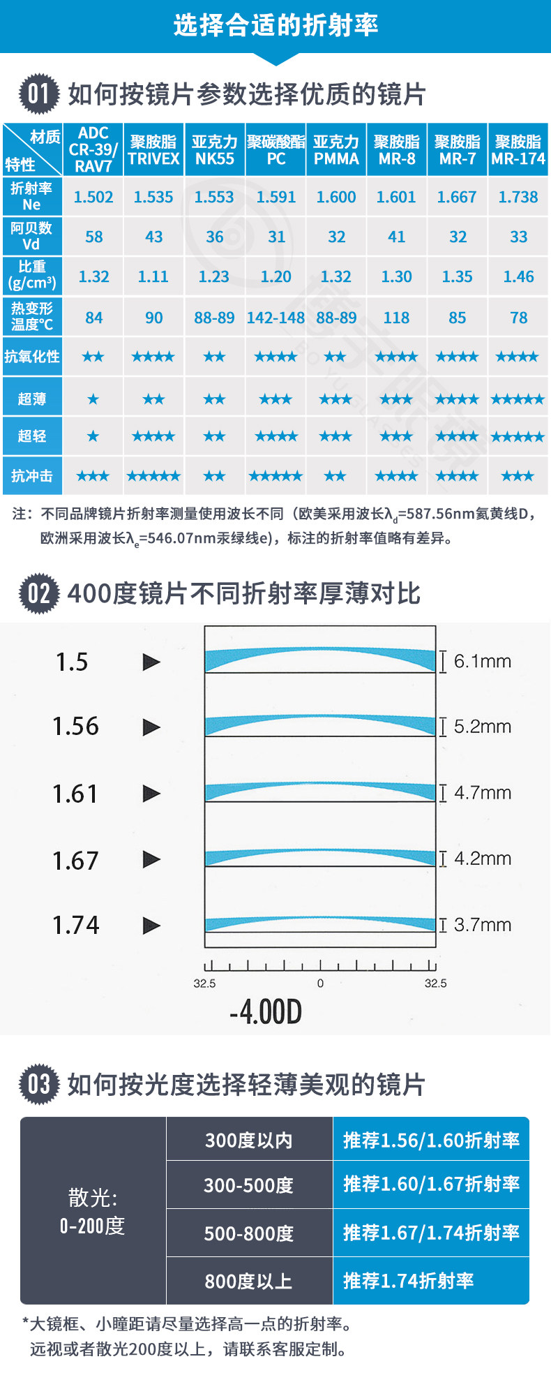 | Показатель преломления линзы: | 1,56 (тонкий), 1,67 (ультра -тщательный), 1,60 (тонкий), 1,74 (ультра -тщательный) |