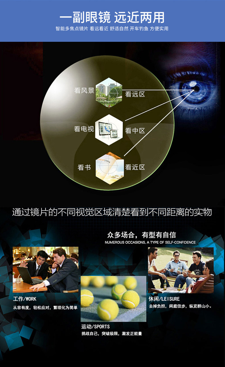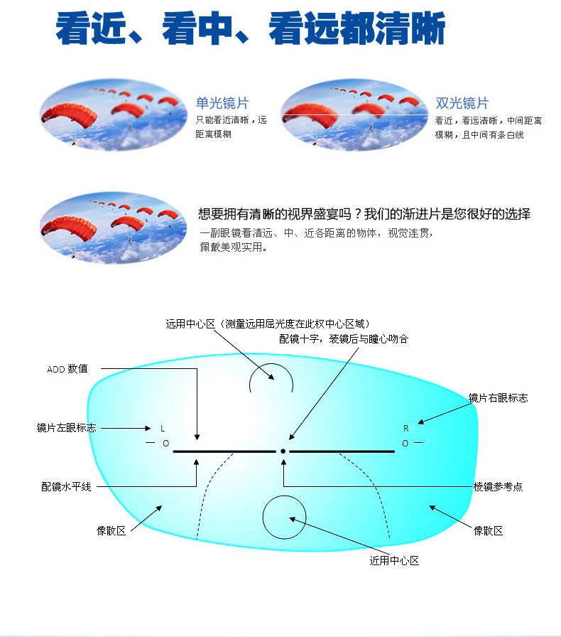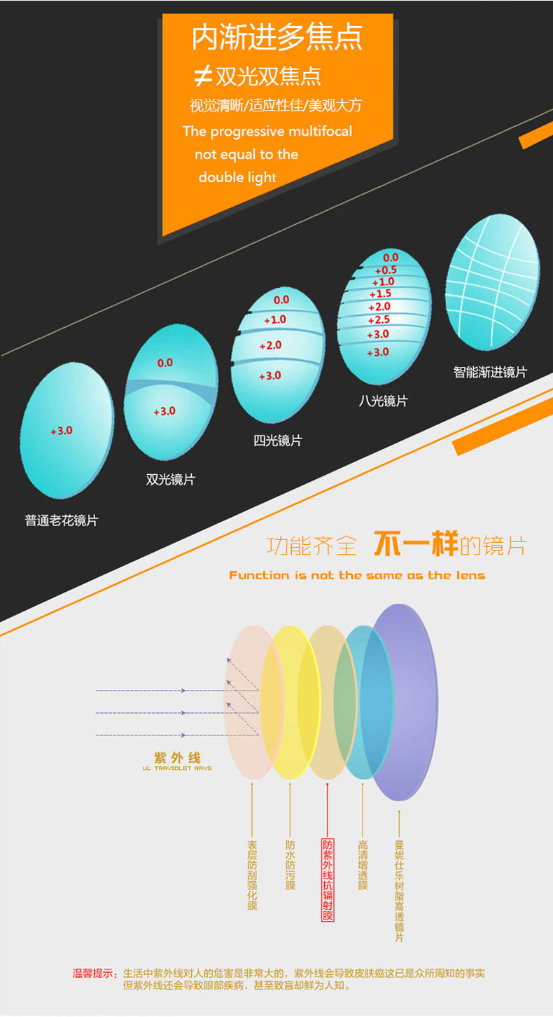 Внутренние прогрессивные многофокусированные смолы Myopia Стакол Антирадиация и синий свет.