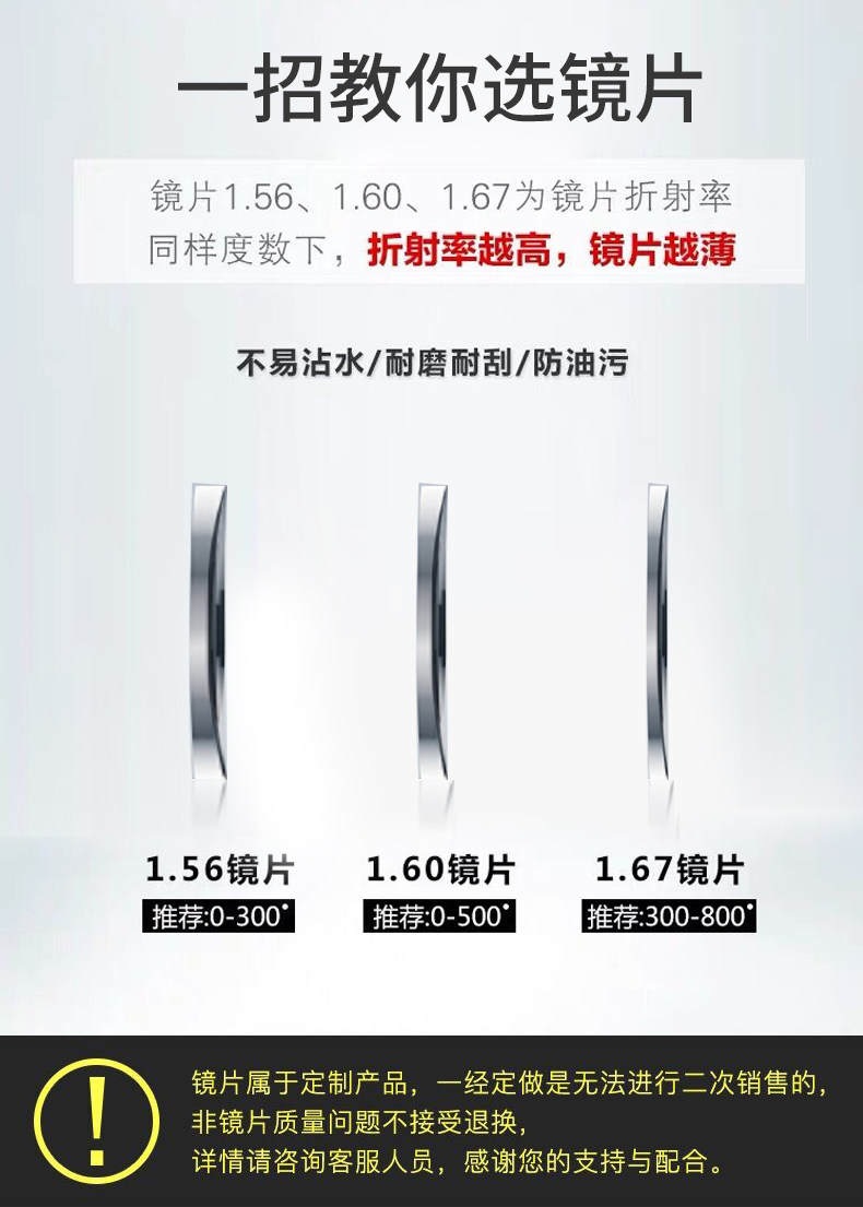| Показатель преломления линзы: | 1,56 (тонкий), 1,61 (тонкий), 1,67 (ультра -тщательный) |