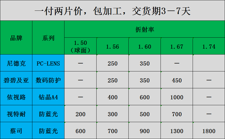 Что касается этого показателя преломления, вы можете отметить, что до тех пор, пока он является линзой для отражения мембранного слоя, внутреннего или относительно низкого уровня, инвентарный лист действительно 1,60, и большинство из них -1,60,60,67 Анти -блейный свет очень хорош. Редко, некоторые бренды могут сделать это, но цена должна быть адаптирована, и цена повышается.Что еще я могу выбрать для друзей с ростом?Пожалуйста, посмотрите на это……