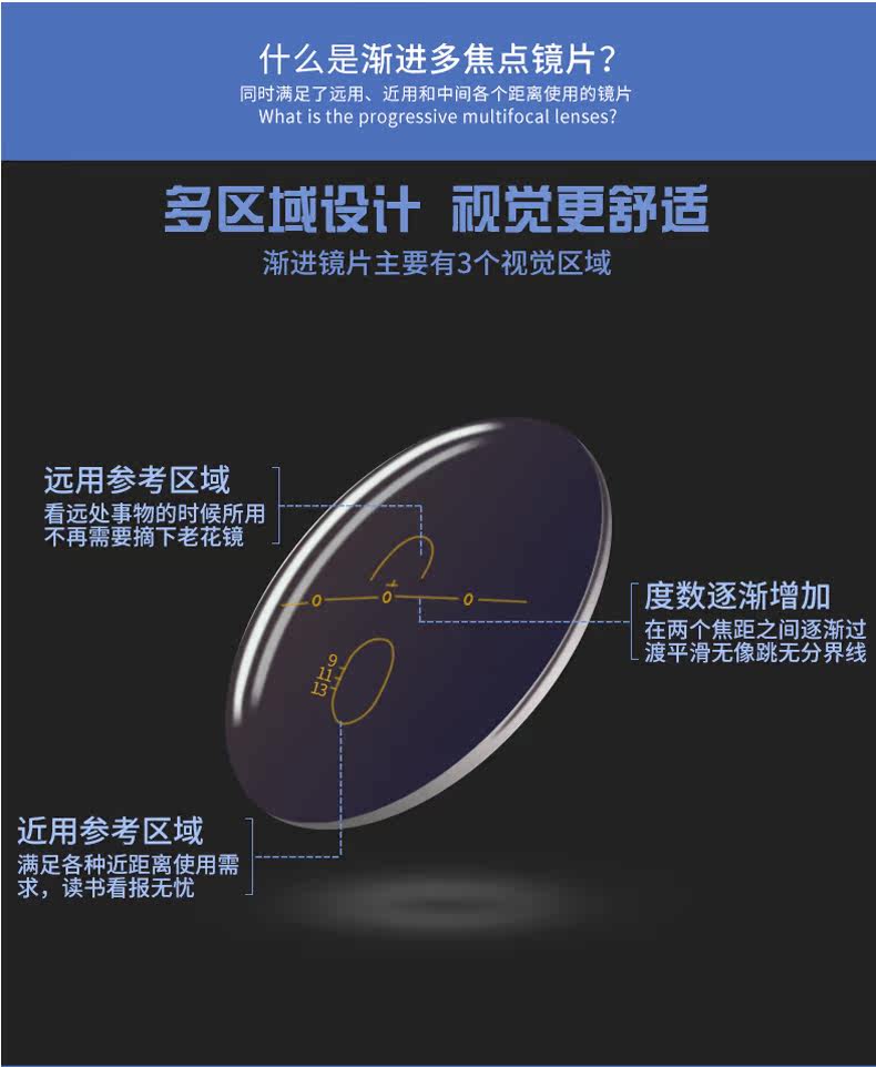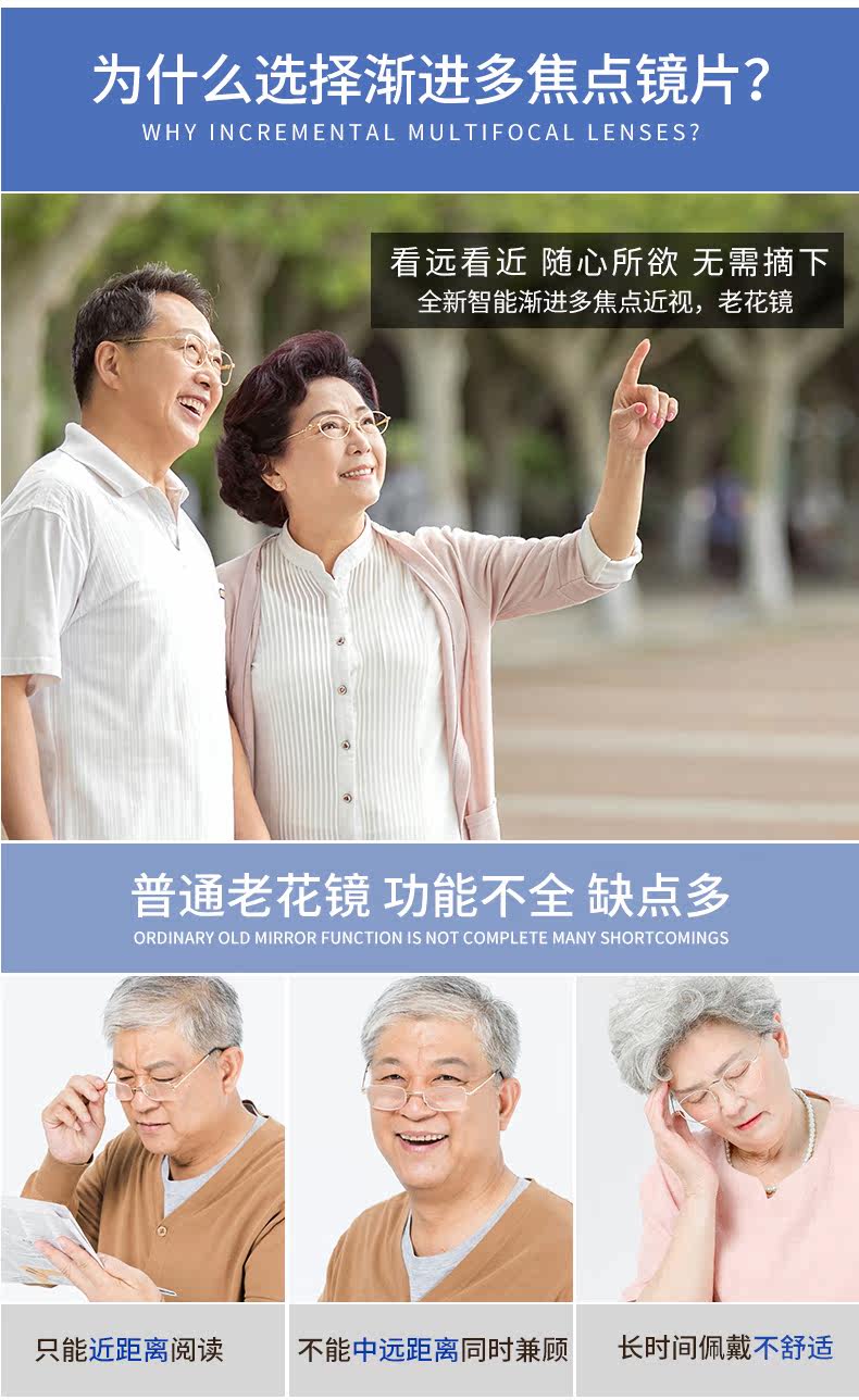 Посмотрите на длинное расстояние, внутренний мультифокусной линзу анти -радиационной анти -блюд -свет, цвет изменения цвета, длинный вид вида старой цветочной смолы