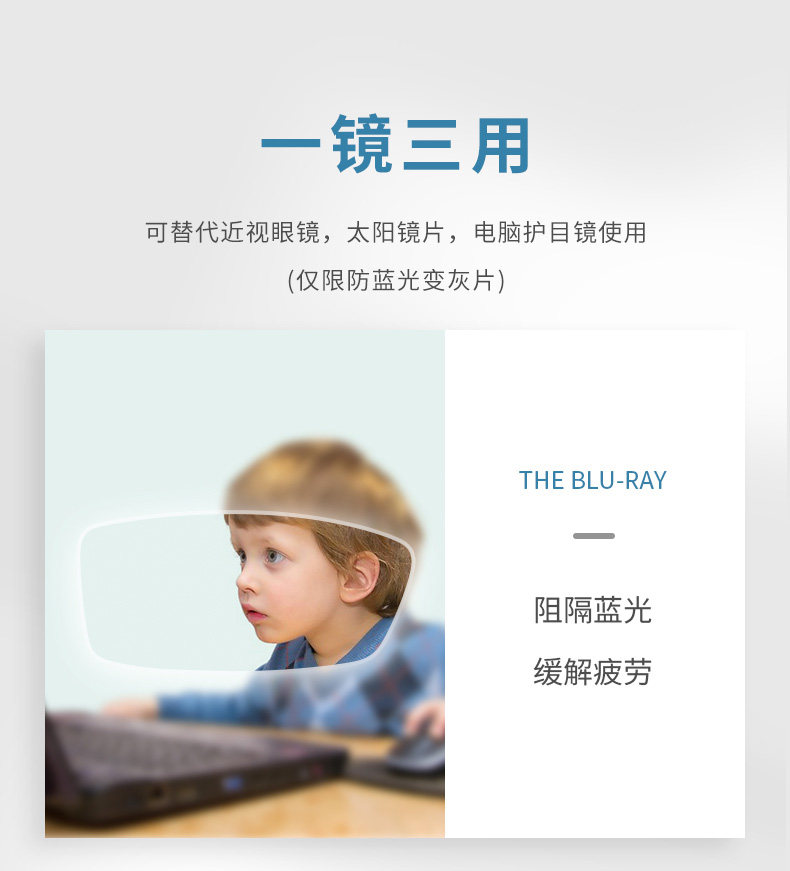 Han Tri -In -One Ant -Glare Lens Myopia может быть сопоставлена с серым синим светом, трансформированным голубым розовым и фиолетовым смолом