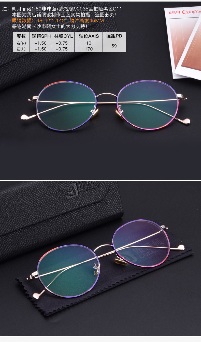 Century Daming Glasses Anti -Blu -Ray Linery 1,60/1,67/1.74 Дополнительные анти -мист -туманные очаровательные миопические очки 2 таблетки