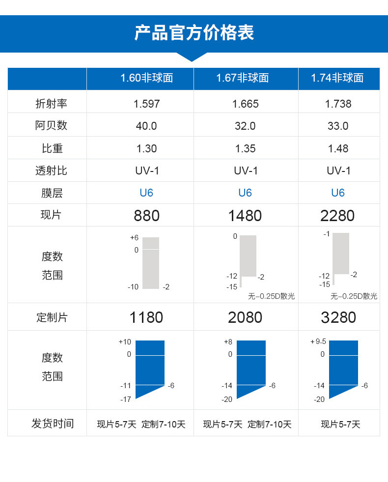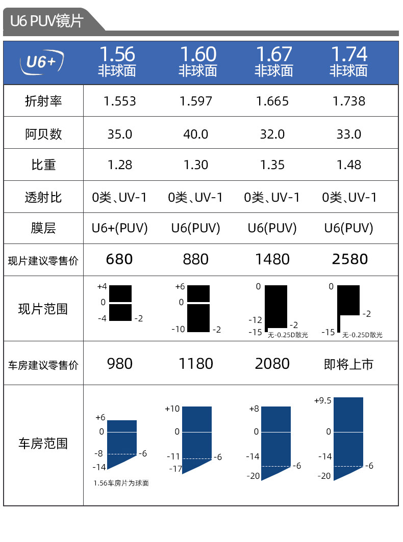 | Показатель преломления линзы: | 1,67 (ультра -тщательный), 1,74 (ультра -тщательный) |