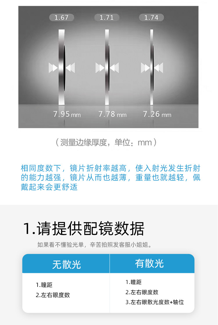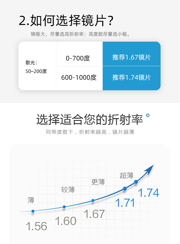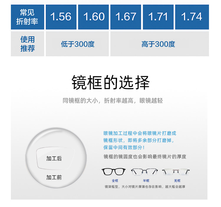 | Показатель преломления линзы: | 1,56 (тонкий), 1,61 (тонкий), 1,67 (ультра -тщательный), 1,74 (ультра -тщательный), 1,70 (ультра -тщательный) |