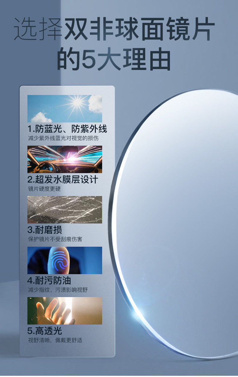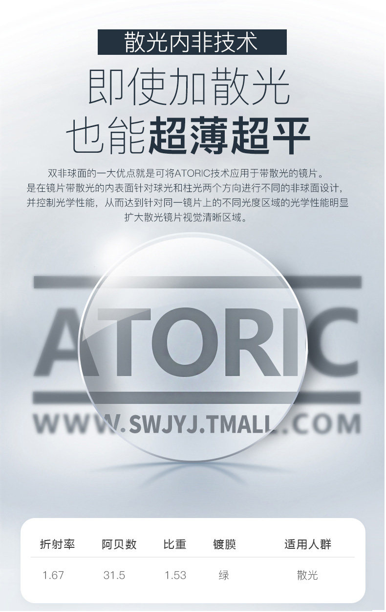 Двойная не -кферическая линза анти -легочная легкая анти -фатигская высокая миопия ультра -типа 1,67 индивидуальная астигматизм глазные линзы с зеркалом