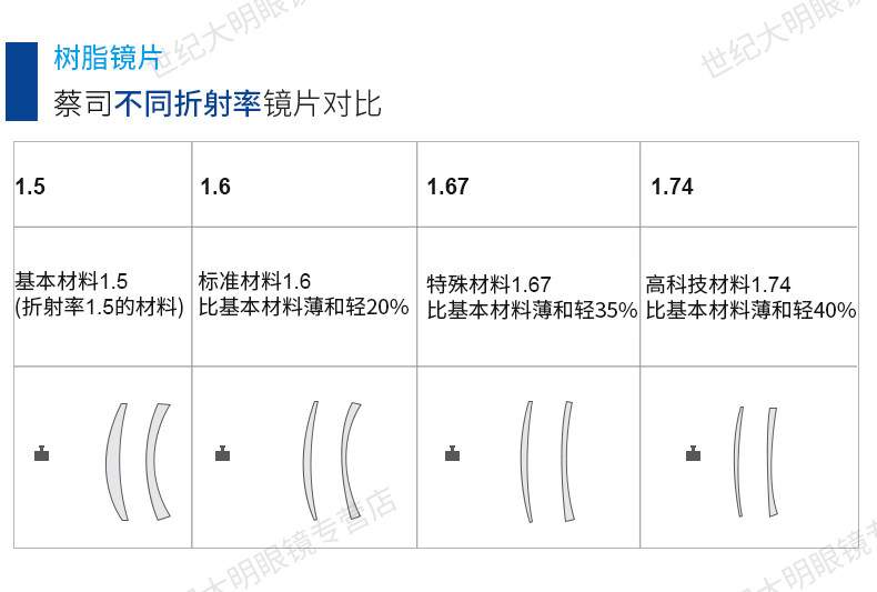 Есть три варианта показателя преломления для этого продукта, 1.50 - сферическая линза1,60 и 1,67 являются не -кферическими