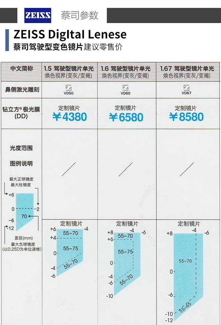 2 куска Zeiss Zeiss Drialles Diamond Diamond Cubes Anti -Glare Постепенно продвинутые ультра -тсические изменения цвета близко