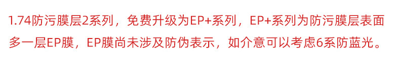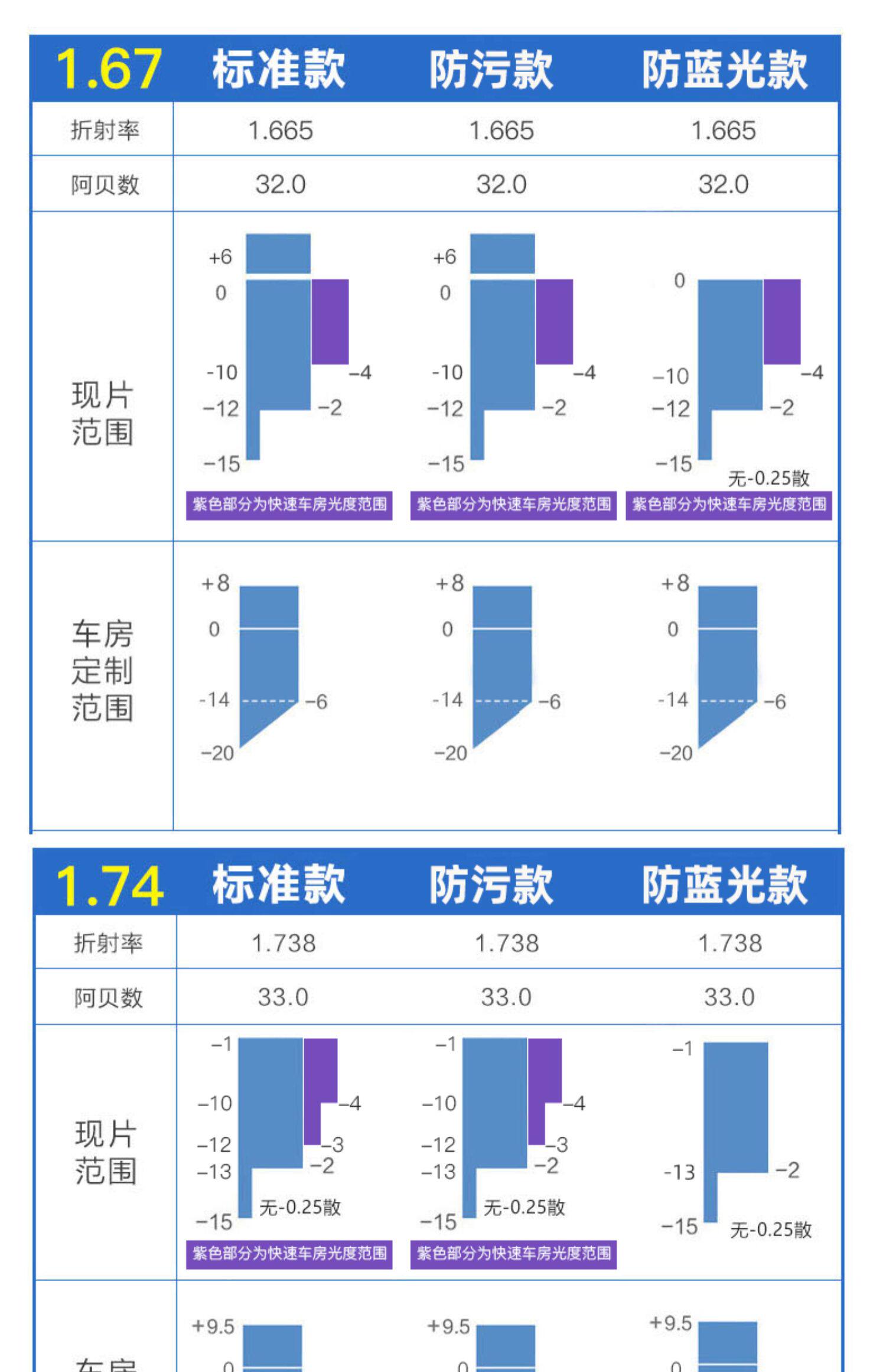 | Показатель преломления линзы: | 1,67 (ультра -тщательный), 1,74 (ультра -тщательный) |