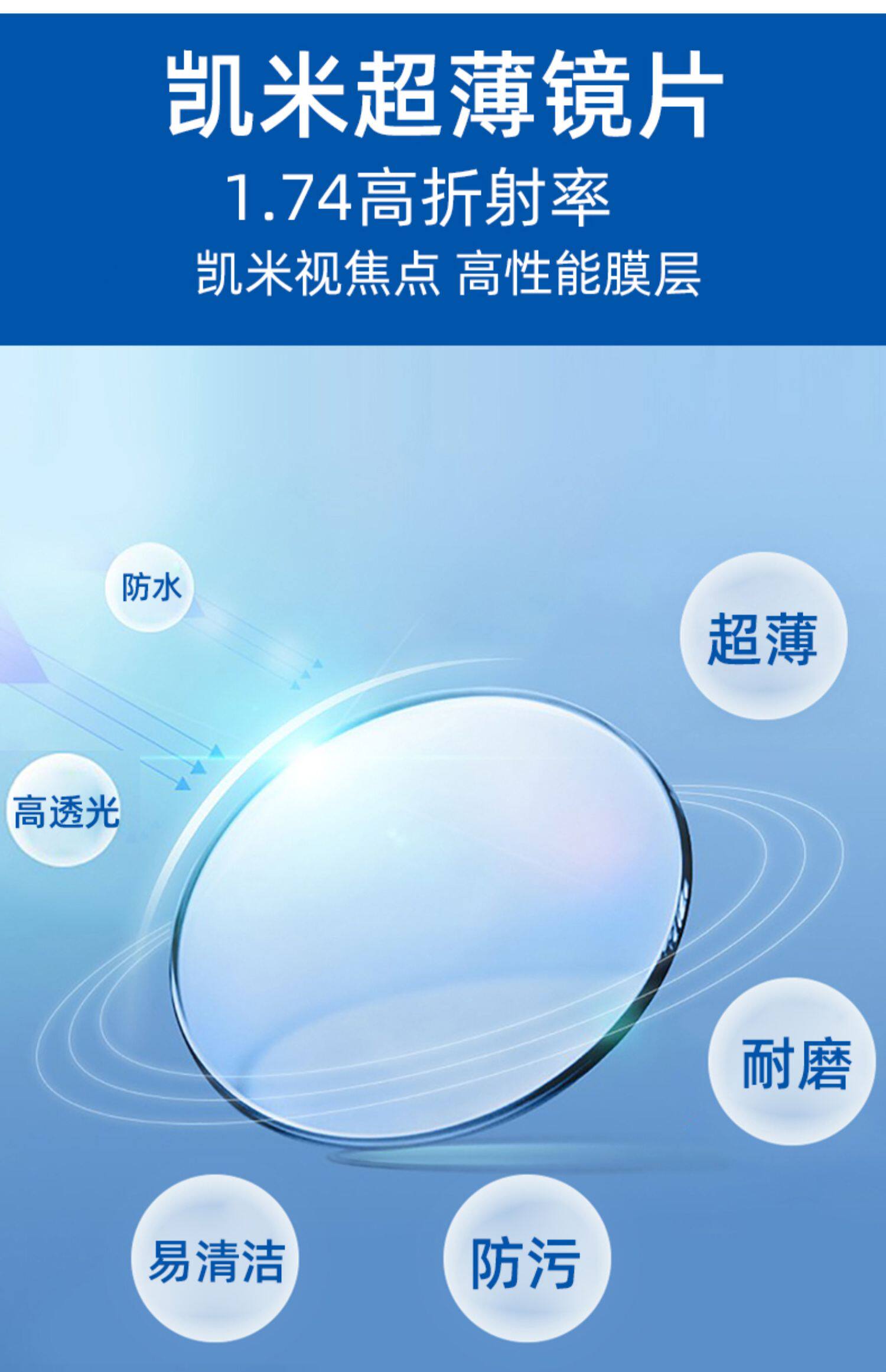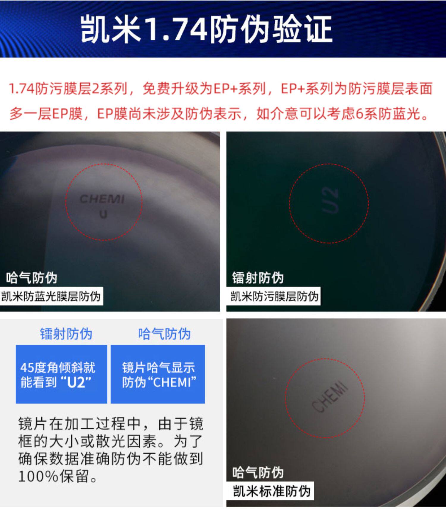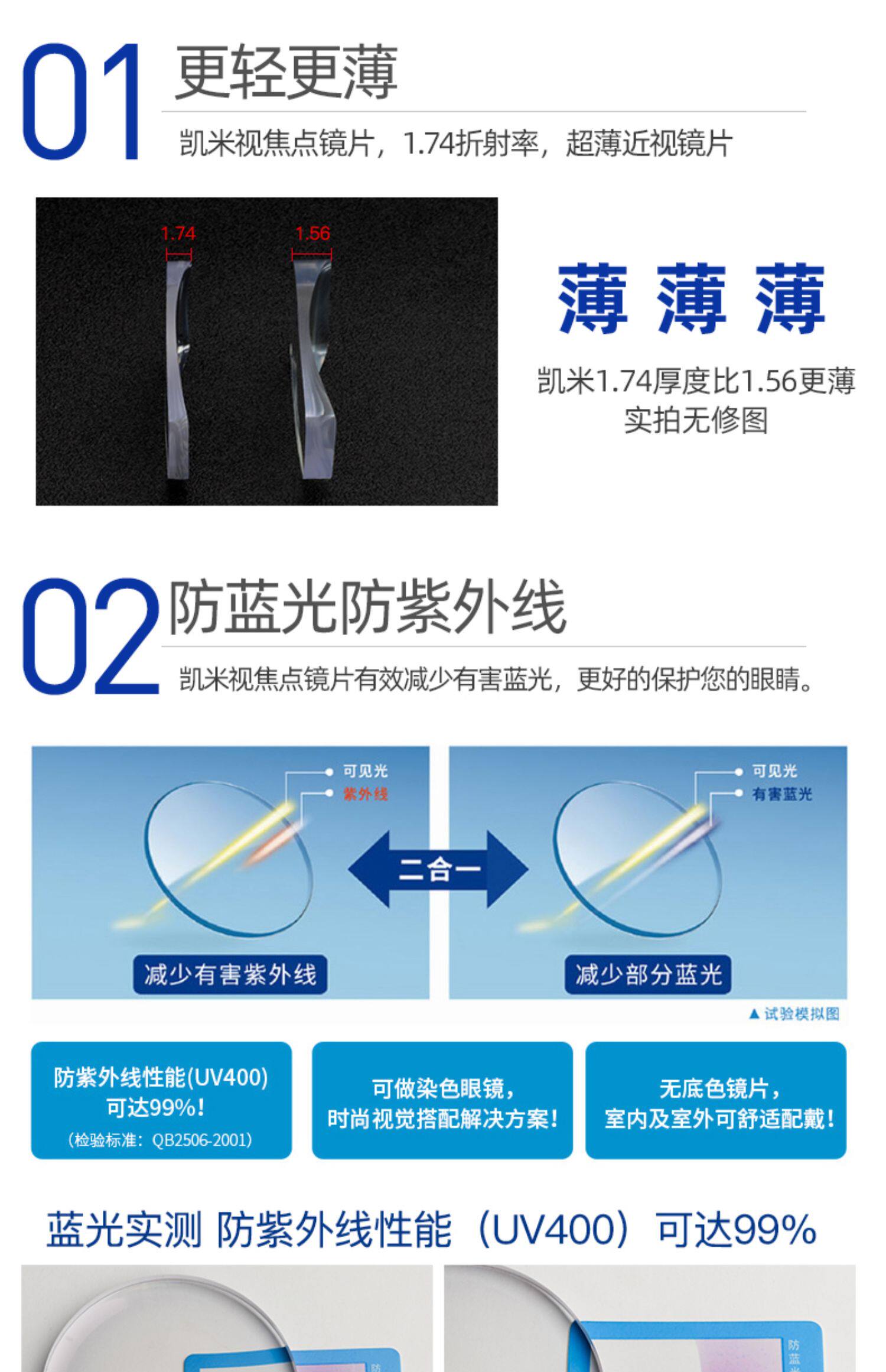 Kemi Lens U6x прозрачный фон анти-синий светлуя золотая банда 1.74 Ультра тонкие очки с высоким уровнем миопии U2 с 2 очками.