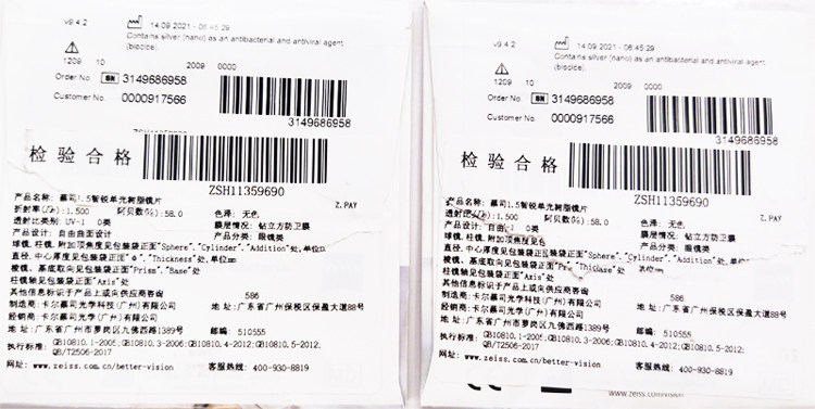 Zeiss Zhirui Glasses Одинокий свет неберический 1.6 1.67 1.74 Diamond Cubic Anty -Blu -Ray Platinum Film