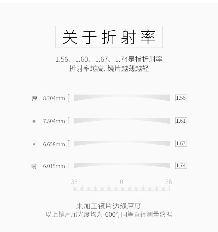 | Показатель преломления линзы: | 1,56 (тонкий), 1,60 (тонкий), 1,67 (ультра -тщательный) |