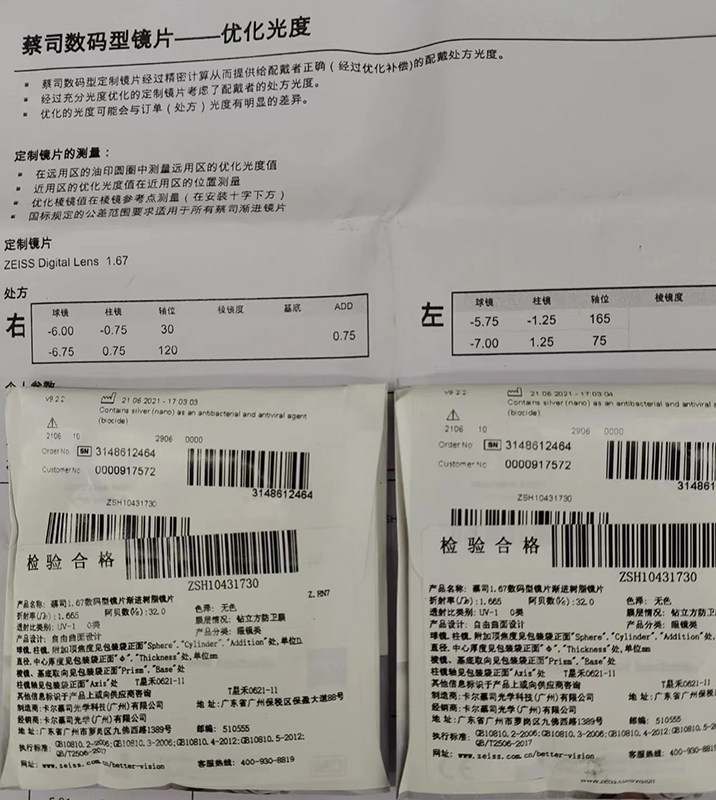 Zeiss Myopia Optical Lins Digital Ant -Blue Light Diamond Cubic Platinum Film 1.74 Ультра -тщательная не -пешевая таблетки медленной усталости