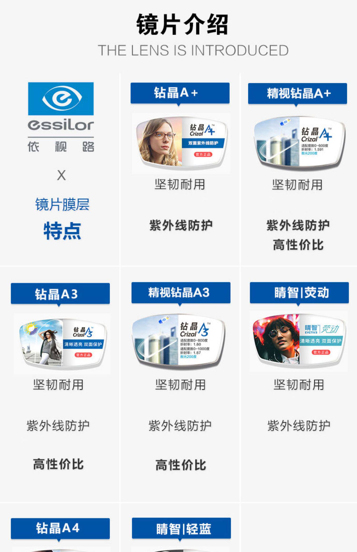 | Показатель преломления линзы: | 1,56 (тонкий), 1,60 (тонкий), 1,67 (ультра -тщательный) |