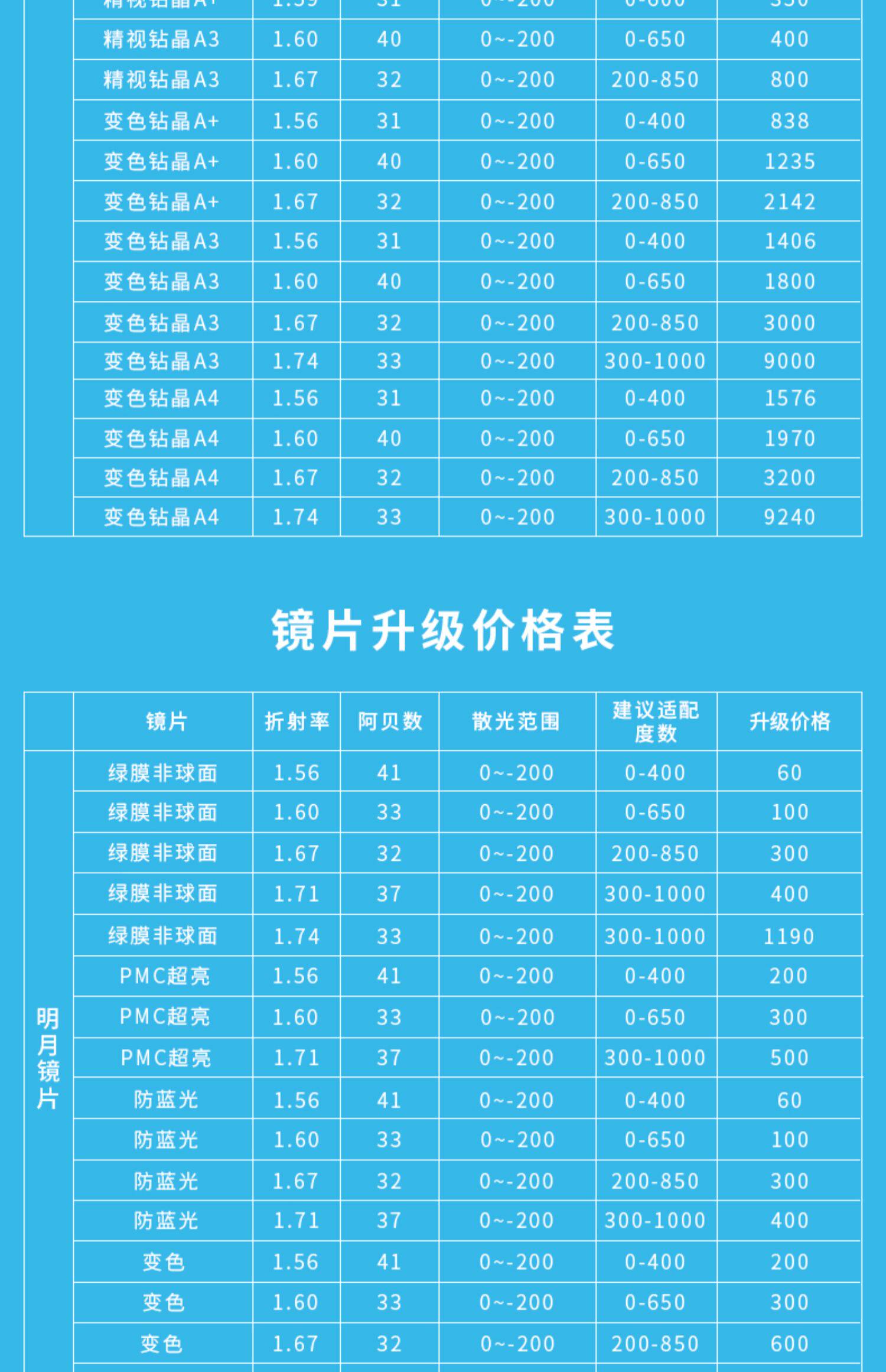 | Показатель преломления линзы: | 1,59 (тонкий), 1,67 (ультра -тщательный), 1,56 (тонкий), 1,74 (ультра -тщательный), 1,60 (тонкий) |