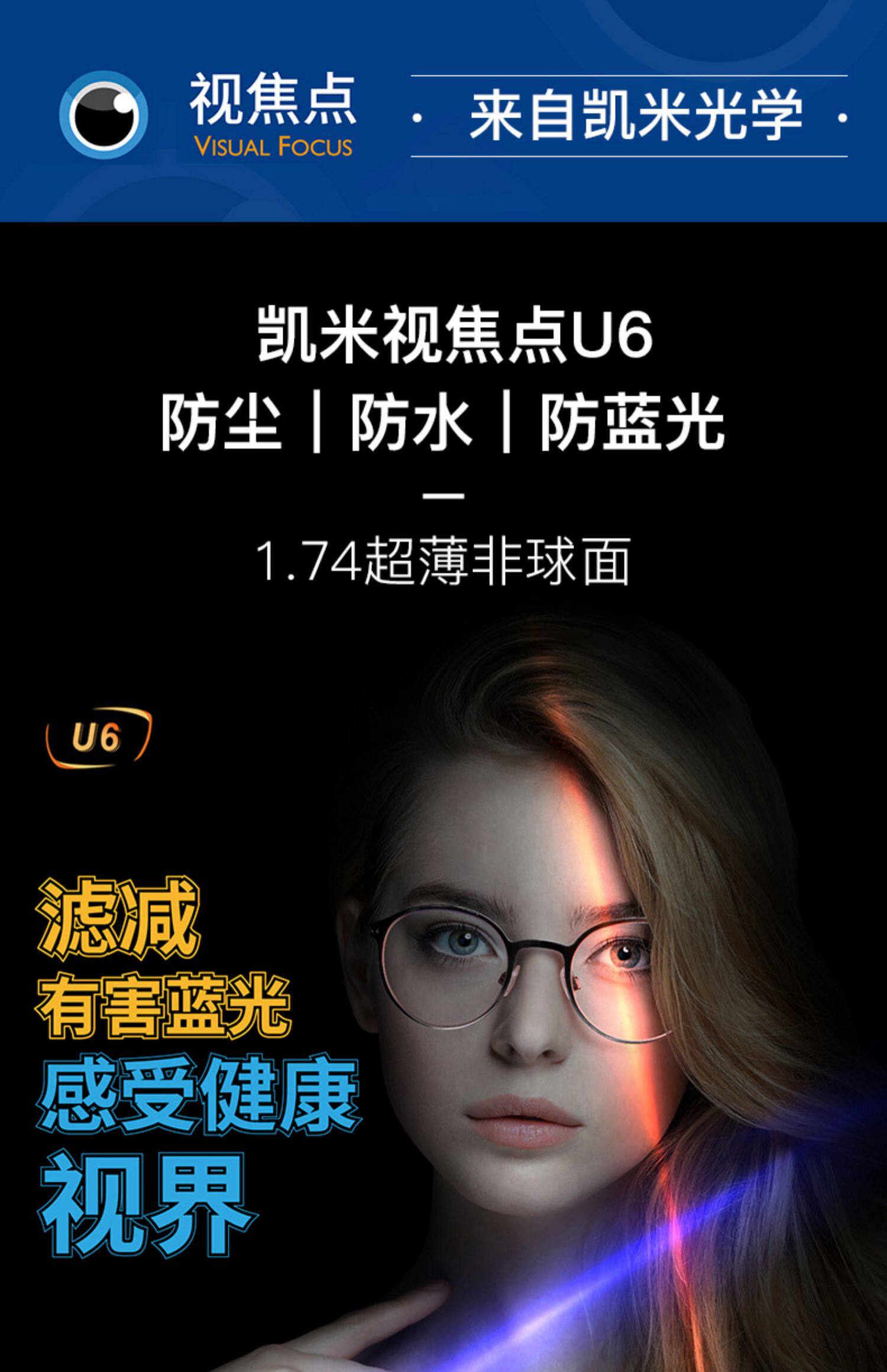 Южная Корея Кимми объектив 1,74 Ультра -тщательные миопии U2 Anti -Blue Light Stacle 1,67 высота с зеркалом U6