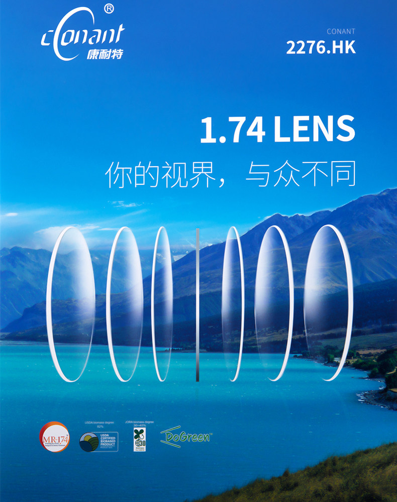 Connet Lense Ultra-Thin 1.74 Несварийский изменение цвета Анти-синий свет с высокими стеклами миопии фиксируйте двойную негиперболическую поверхность
