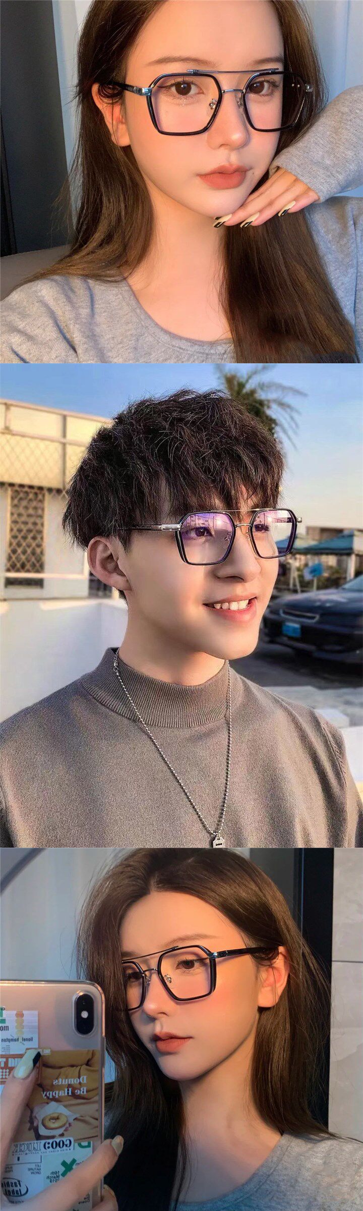 2 боятся 22 металлического каламбура om0ut и очков, создающие женщины мужчины мужчина против синего.