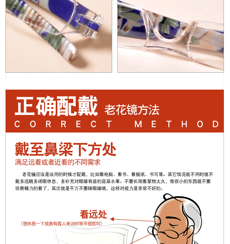 Складывание держателя ручки Laohua Mirror Портативный средний и пожилой безрадостный старые цветочные очки