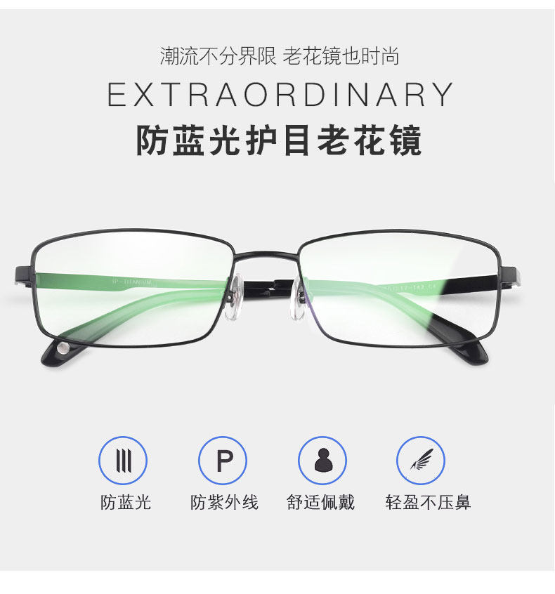 Чистое титановое анти -блюд легкое анти -фэтигское радиационное излучение старое цветочное зеркало мужское мужское высокооделенное очки подлинные старшие пожилые люди с высоким брендом гиперопия бренда