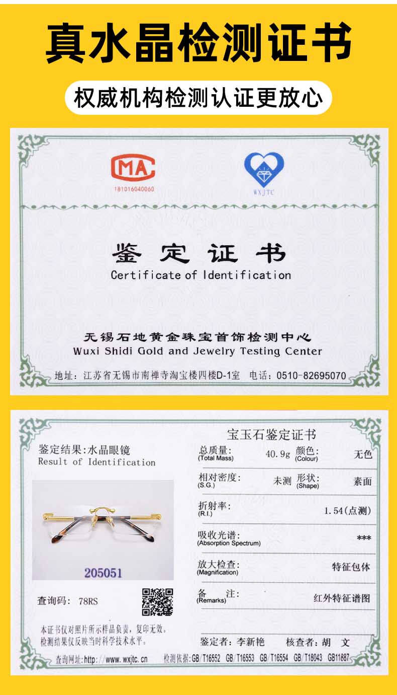 - [Подлинная гарантия] Существует сертификат кристаллического тестирования!