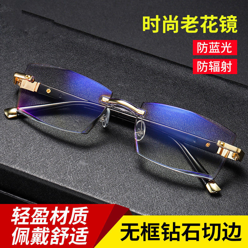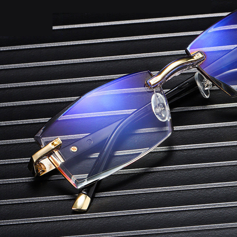 Высококачественные очки для чтения с защитой от синего света, высококачественный металлический безрамочный дизайн, защита от радиации, снятие усталости, края с алмазной огранкой