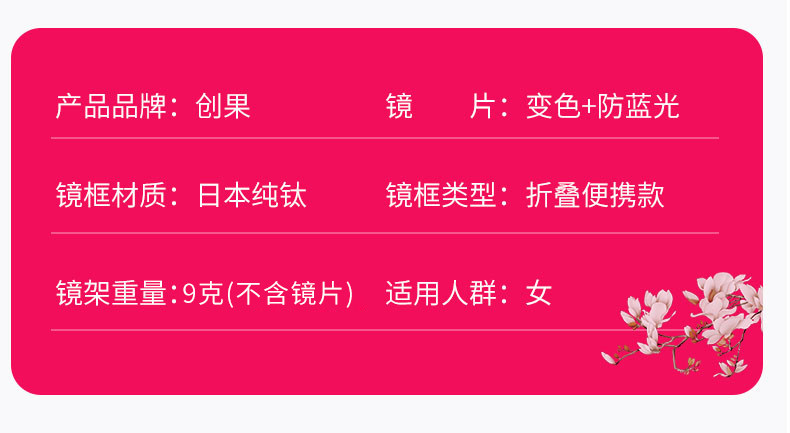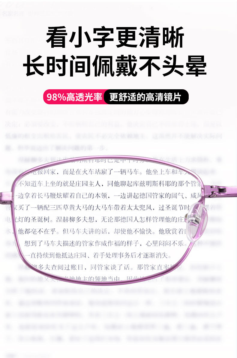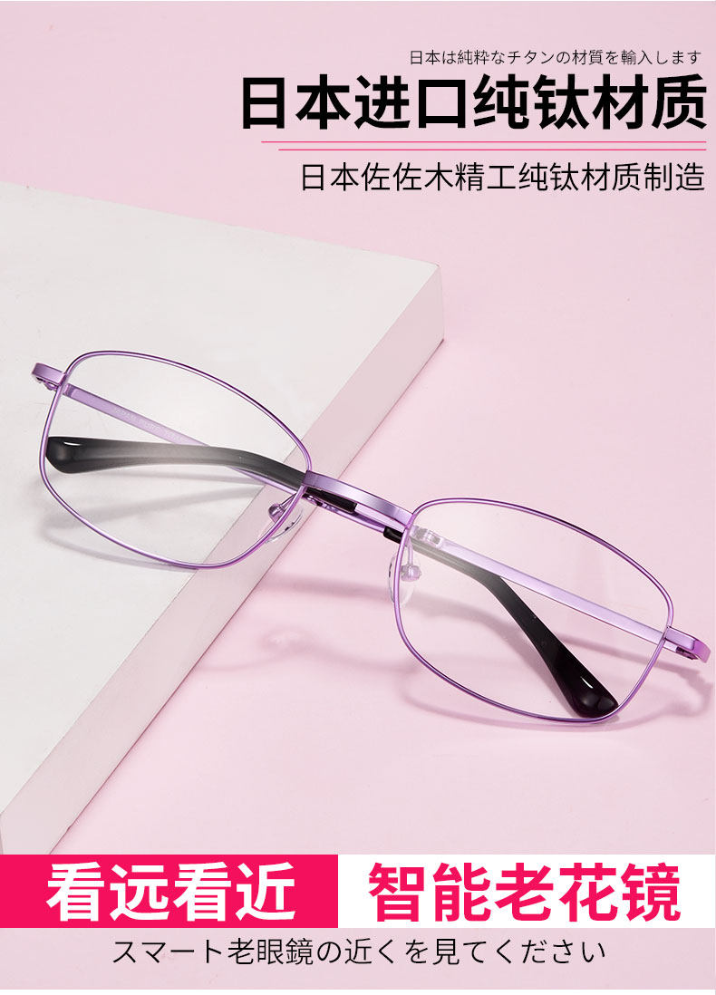 - Pure Titanium 89 Purple Frame [посмотрите на расстояние, закрыть ближний изменение цвета, чтобы предотвратить синий свет] 100 градусов