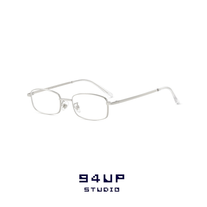 [94up] Чистое желание абсолютно красиво, простые очки серебряной металлической рамы, женская защита Blu -Ray Long Square Net Red Model