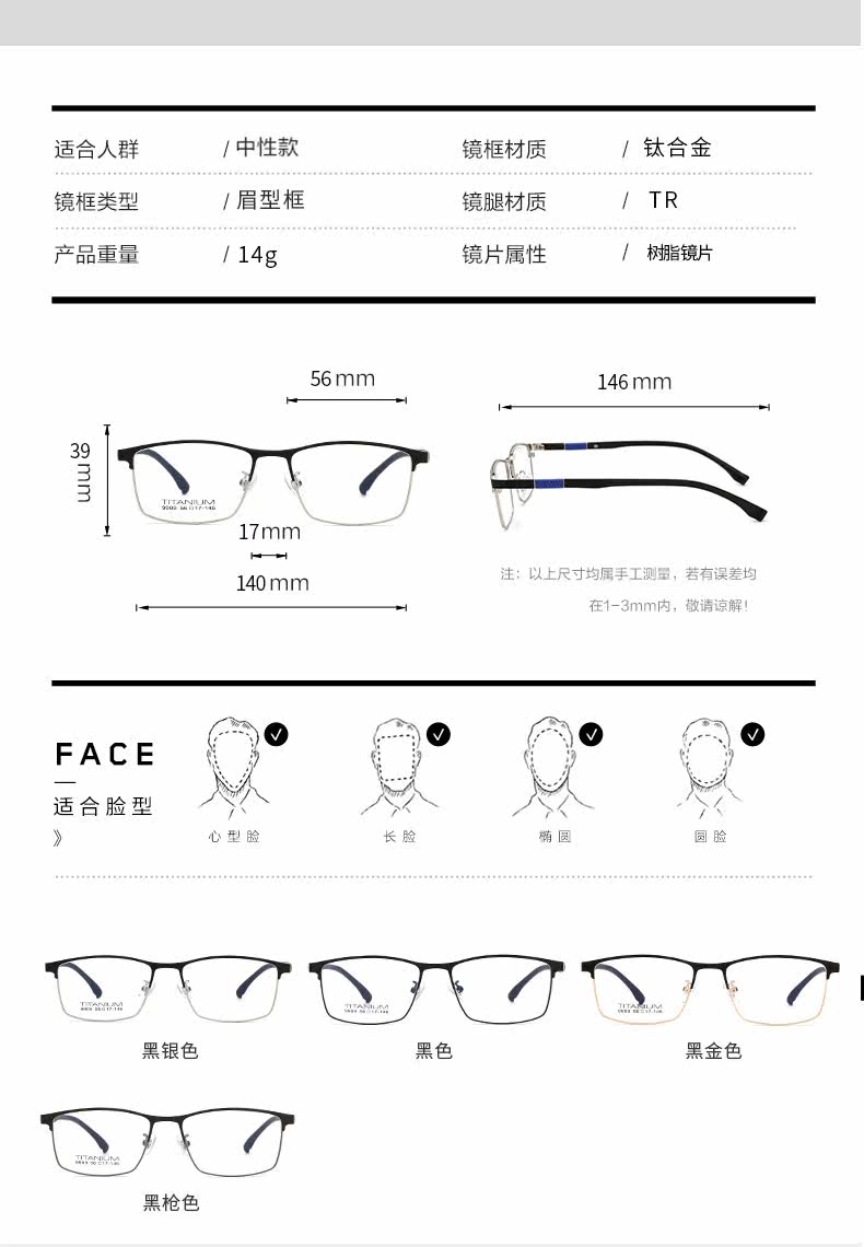 - 【Одно зеркальное рама】 9909C3 Черное серебро