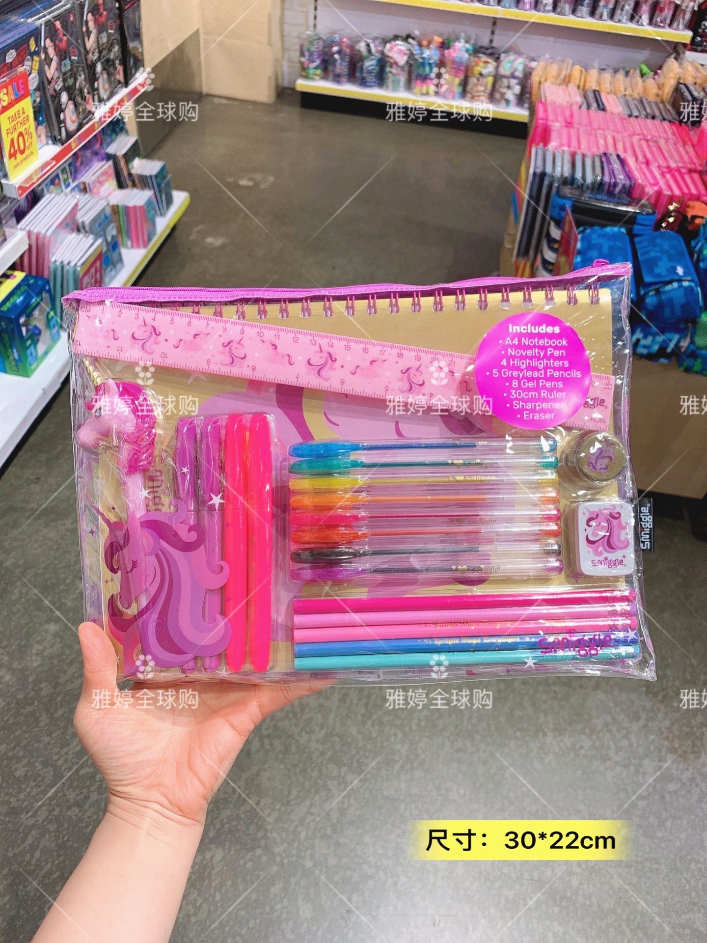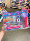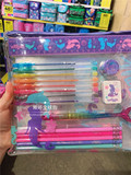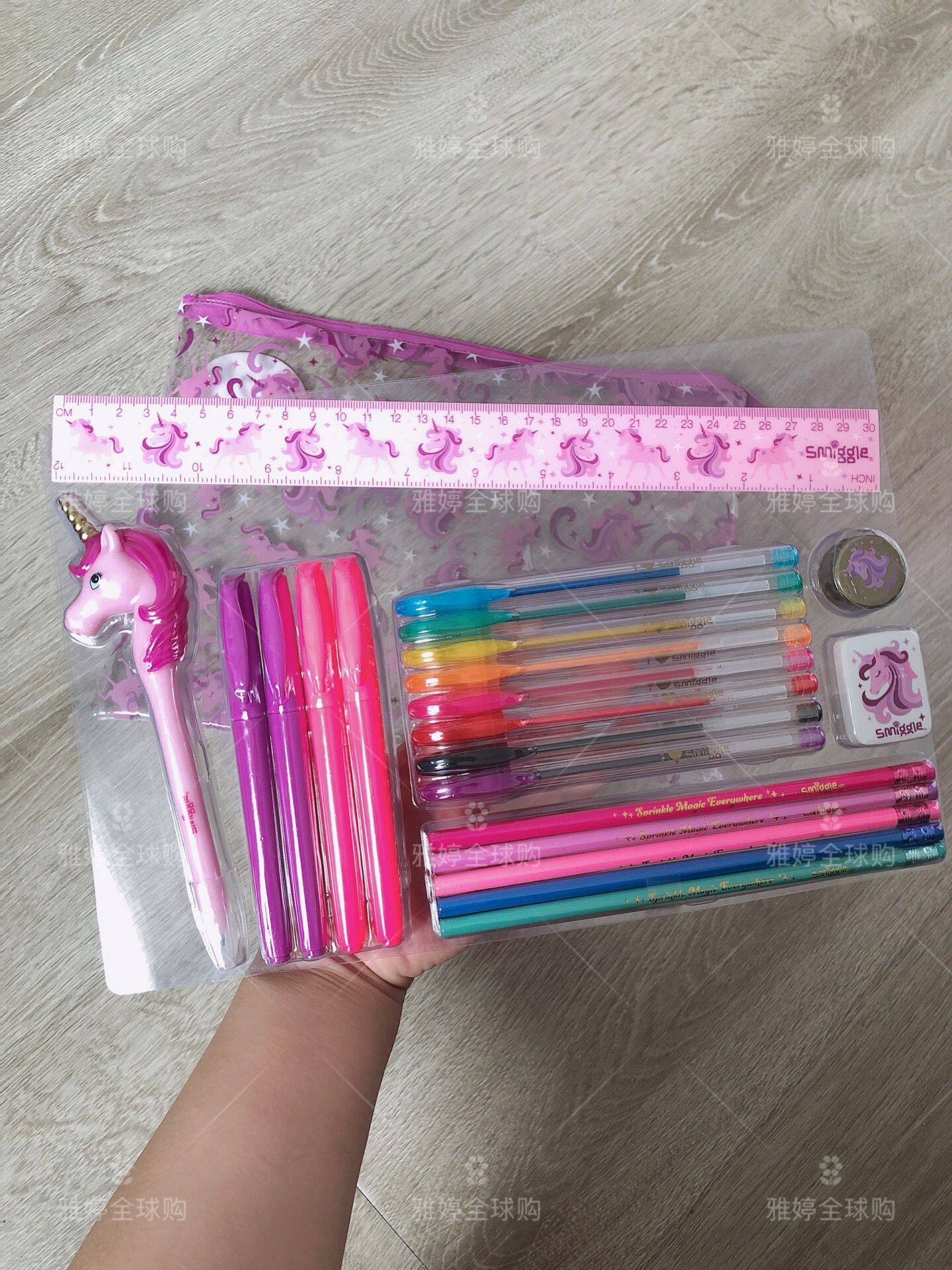 - Розовый автоматический пенал, комплект, единорог, 14 шт