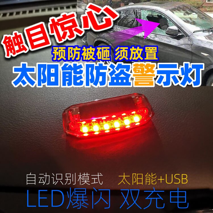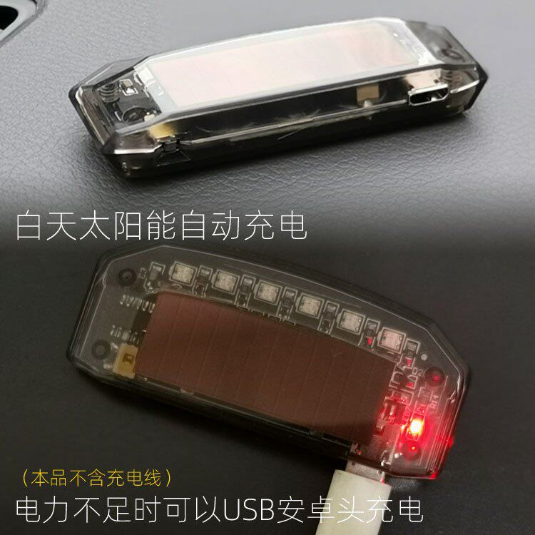 Светодиодная индикаторная лампа на солнечной энергии для авто, динамичная сигнализация, индукционные блестки для ногтей с зарядкой, анти-кража, вибрация