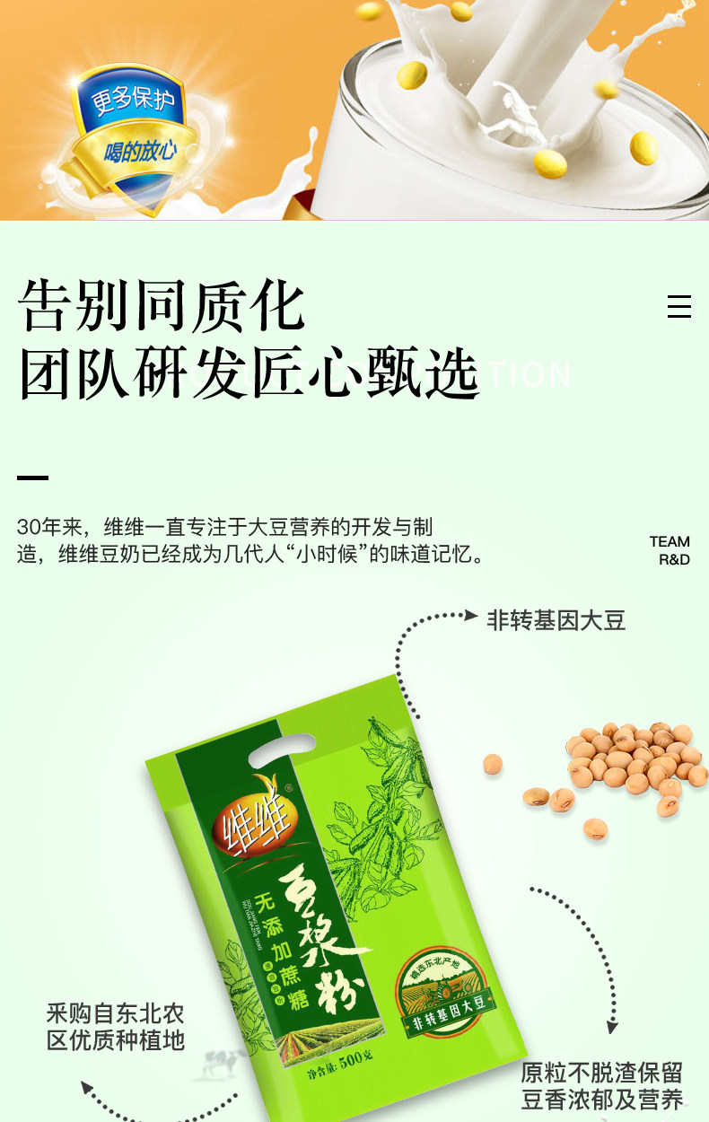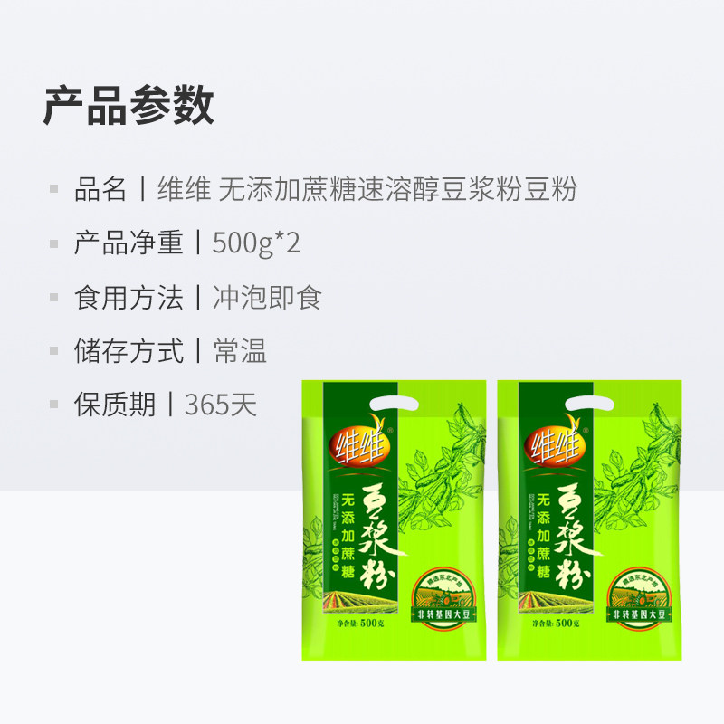 维维 Не -добавленная сахароза -деамол растворимый мягкий соевый молочный порошок 500 г*2 пакета питательный