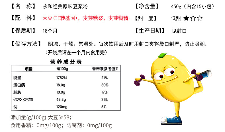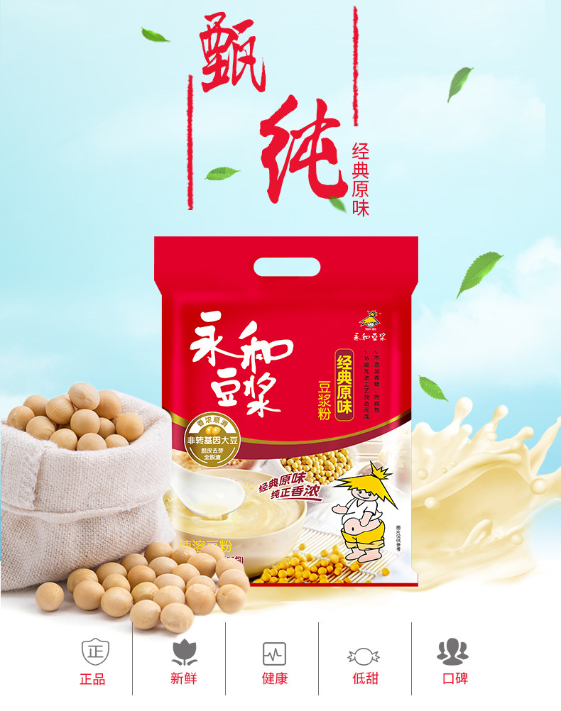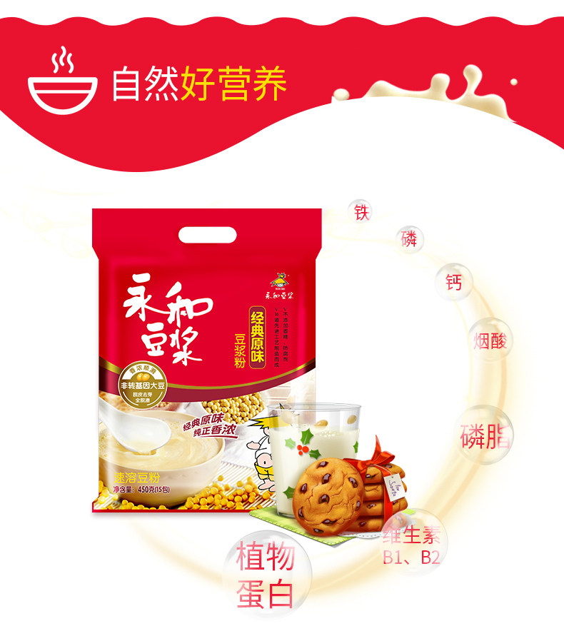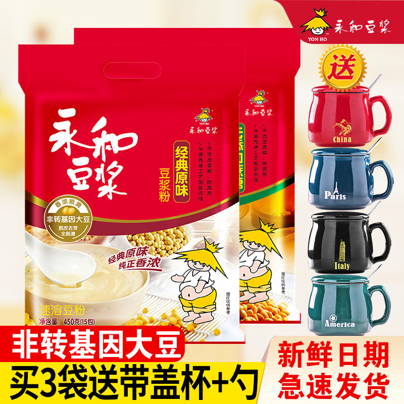 Yonghe Soymilk 450G Классический оригинальный сладкий сладкий соевый молоко питание для завтрака за завтрак скорость плавное соевое молоко 15 упаковка