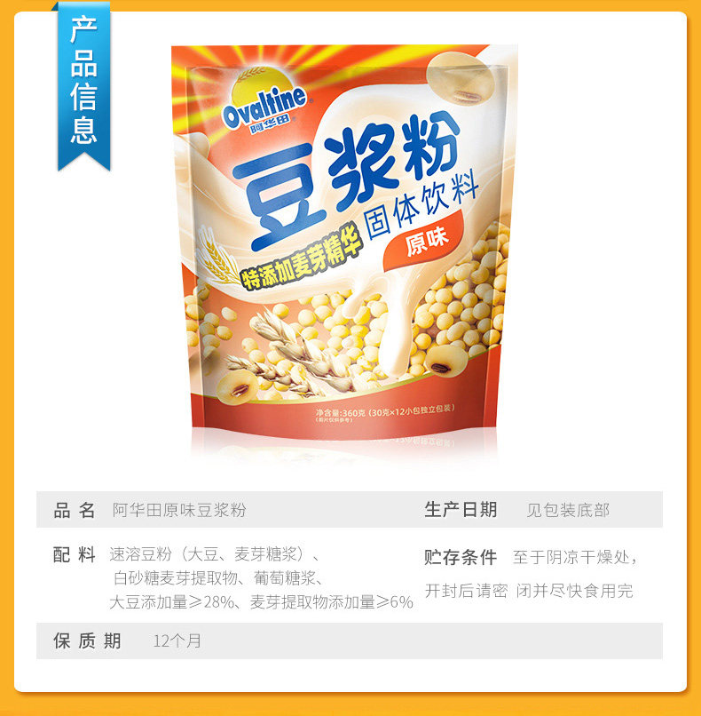 Аварианский классический оригинальный сладкий соевый молочный порошок не -роторный партнер для завтрака соевый молоко 30 г*12 кусочков горячего и холодного пивоварения