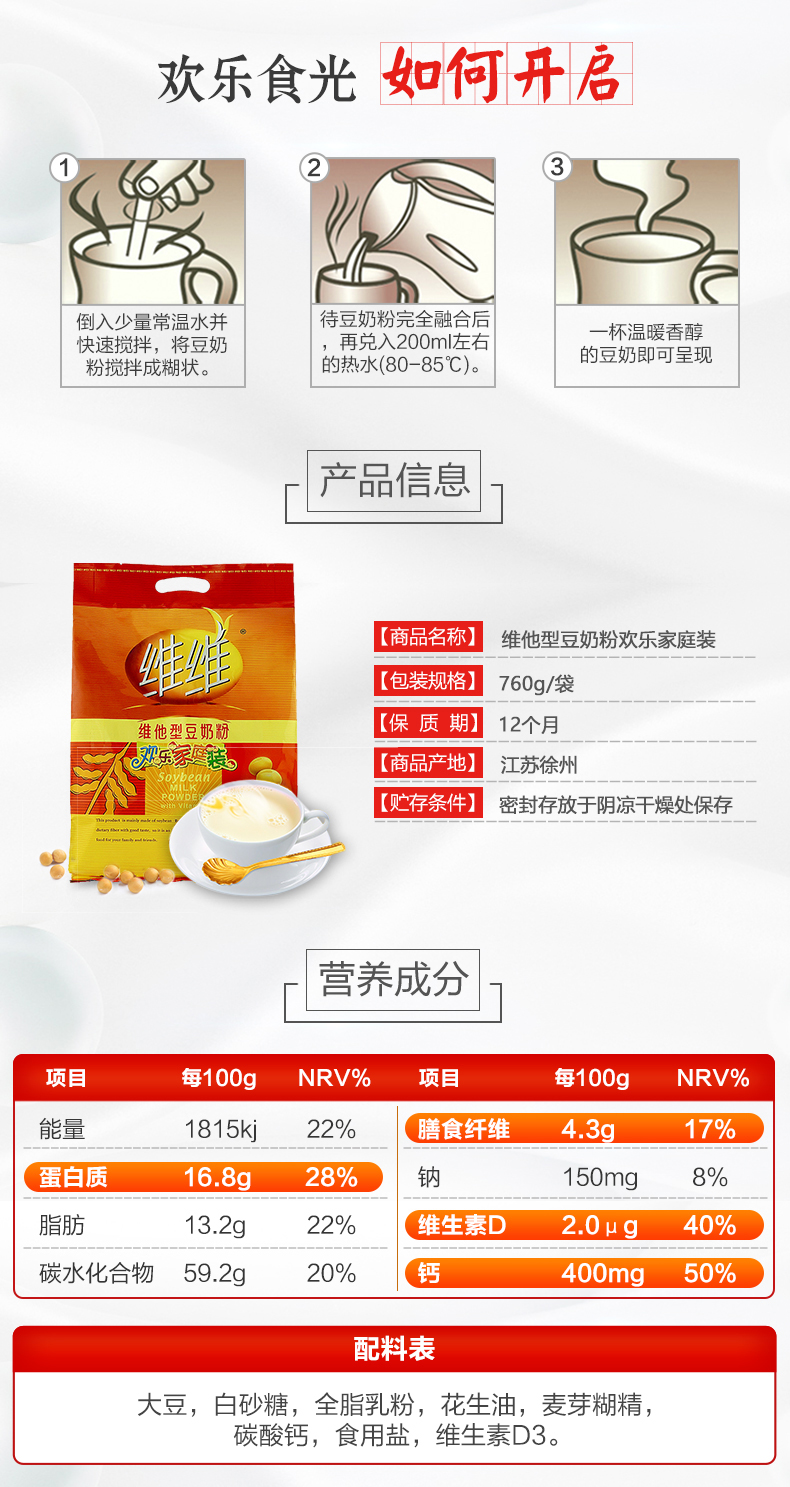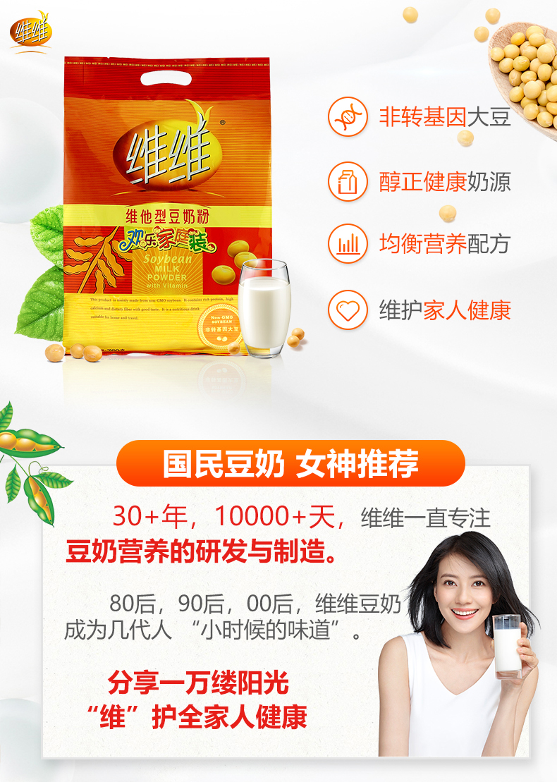 维维 Соевый молочный порошок 760 г маленькие мешки с питанием для завтрака Студенты варят витаминный соевый молоко для соевого молока Официальный флагман