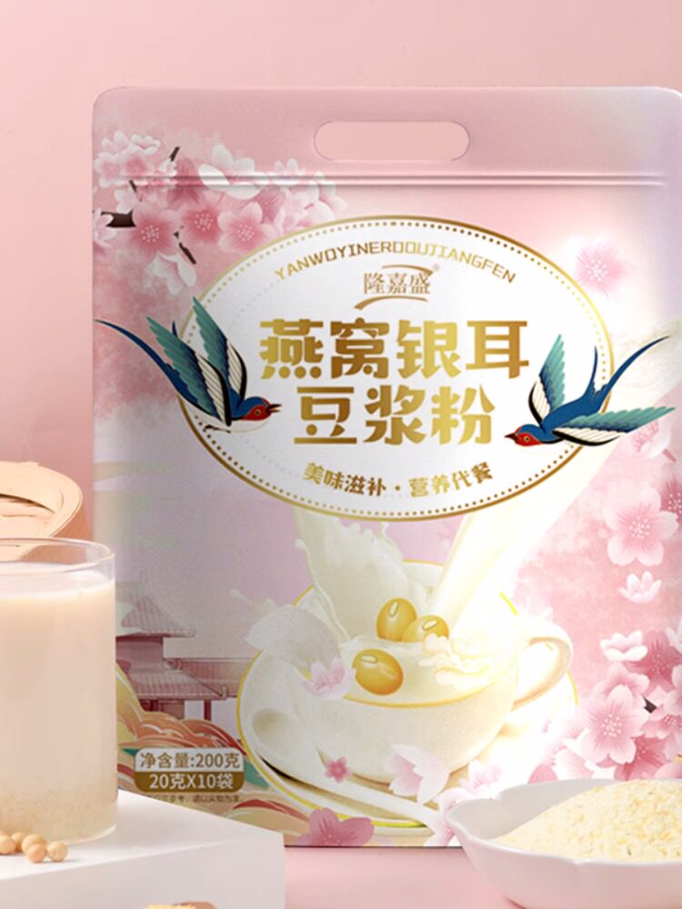 - Птичье гнездо серебряное ушное соевое молоко порошок 200 г*4 мешки+чашка доставки