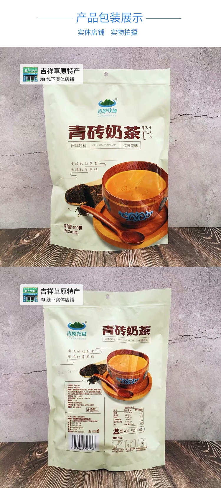 青原牧场 Синий кирпичный чай чай внутренний Монголия Специальное пастбища соленое молоко чай 400 г маленькая упаковочная сумка Установлена завтрак и напиток