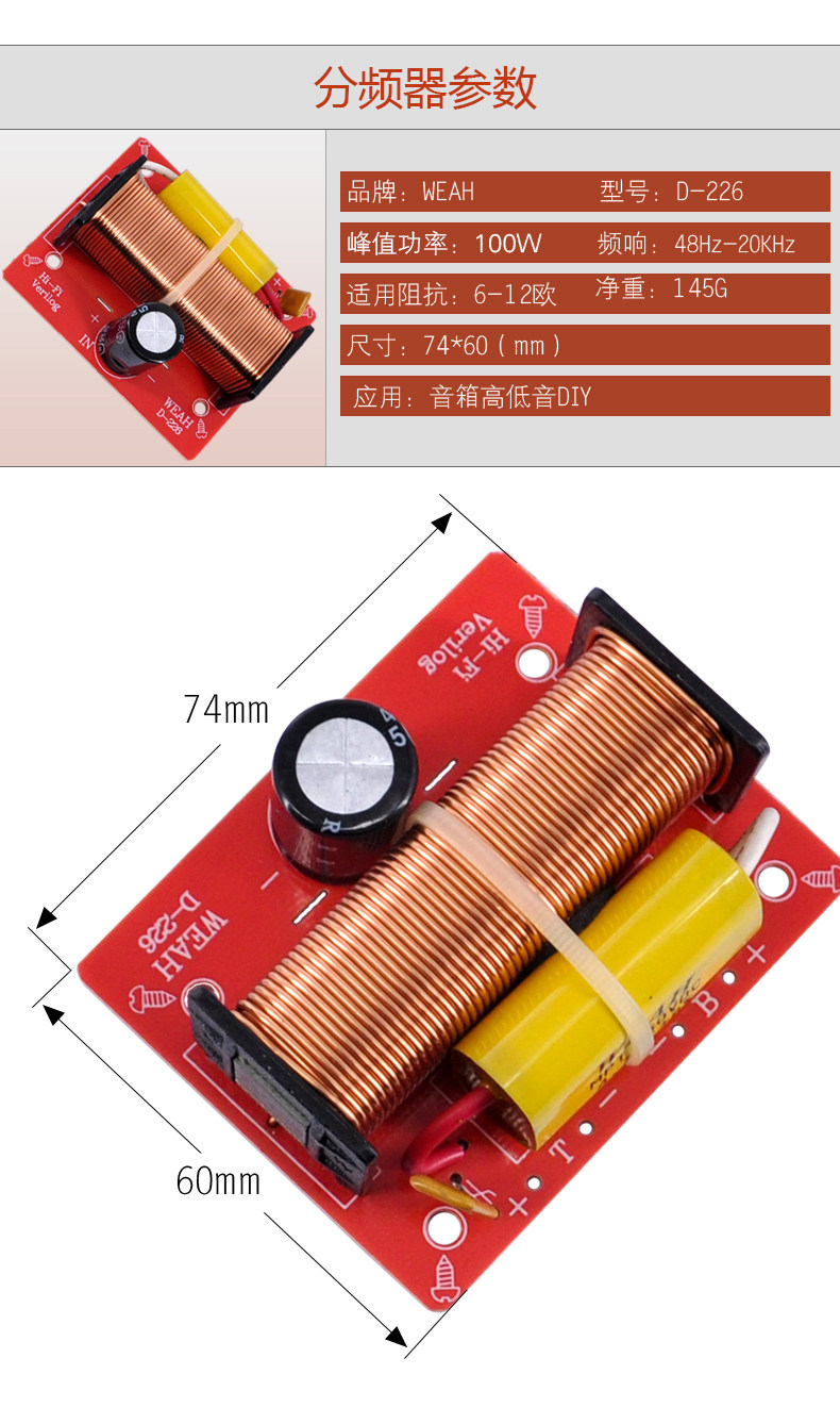 [WEAH D226 音箱分频 可装线盒2分频 高低2分频器 音质提升利器]